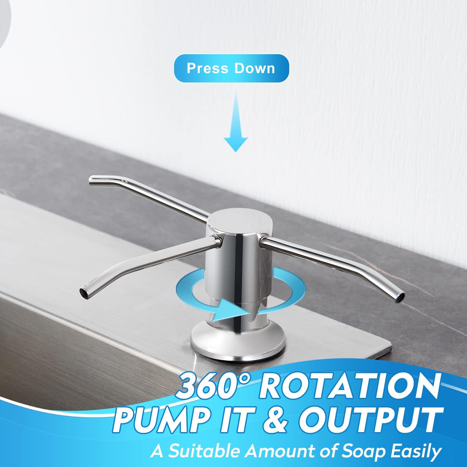 CREA Chrome Built-in Soap Dispenser for Kitchen Sink,Stainless Steel Kitchen Dish Soap Dispenser Pump,in Counter Soap Dispensers Under Sink Mouted Set 39" Tube 17oz Large Bottle