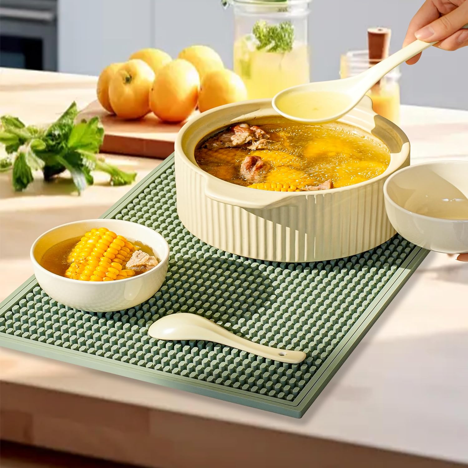 - HIGH QUALITY MATERIAL: Our green bar mat is made from the best materials, which have been carefully chosen to make sure it is very strong and will last a long time. Whether it's in a busy bar or a cosy home coffee corner, this mat is built to last.