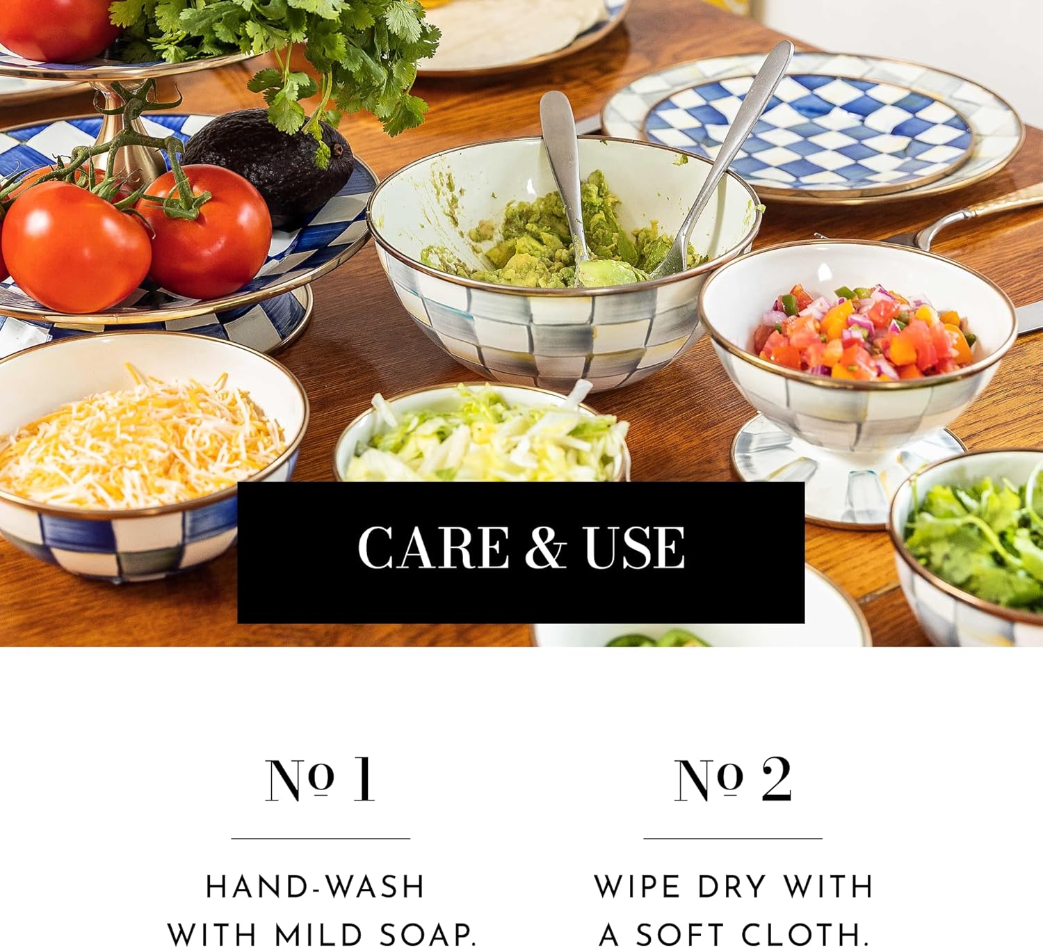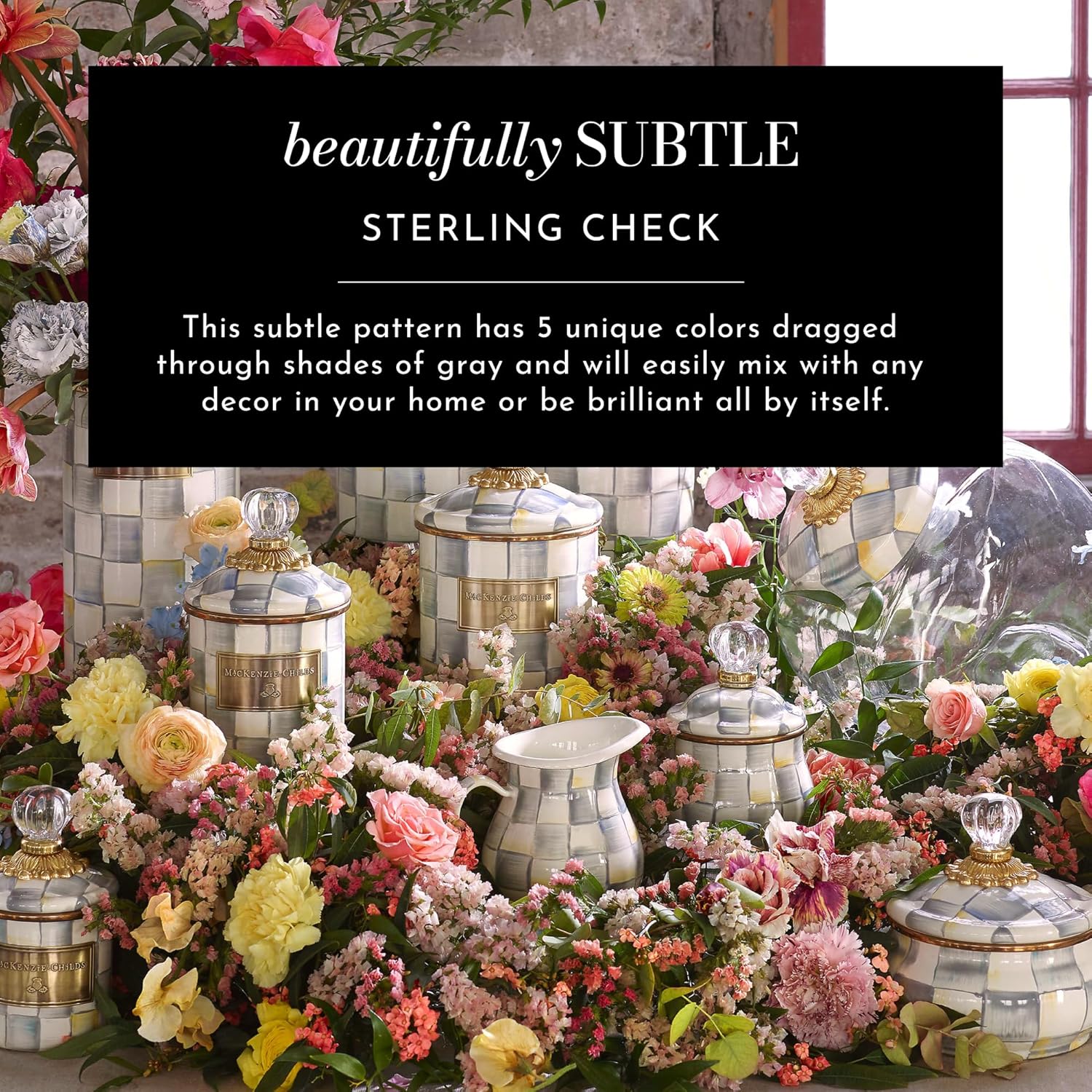 MACKENZIE-CHILDS Enamel Everyday Bowl, Serving Bowl for Entertaining, Medium, Gray-and-White Sterling Check, Set of 1