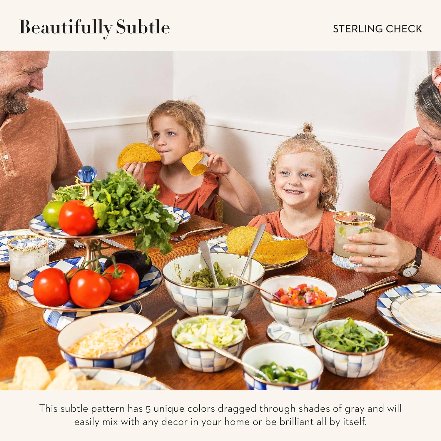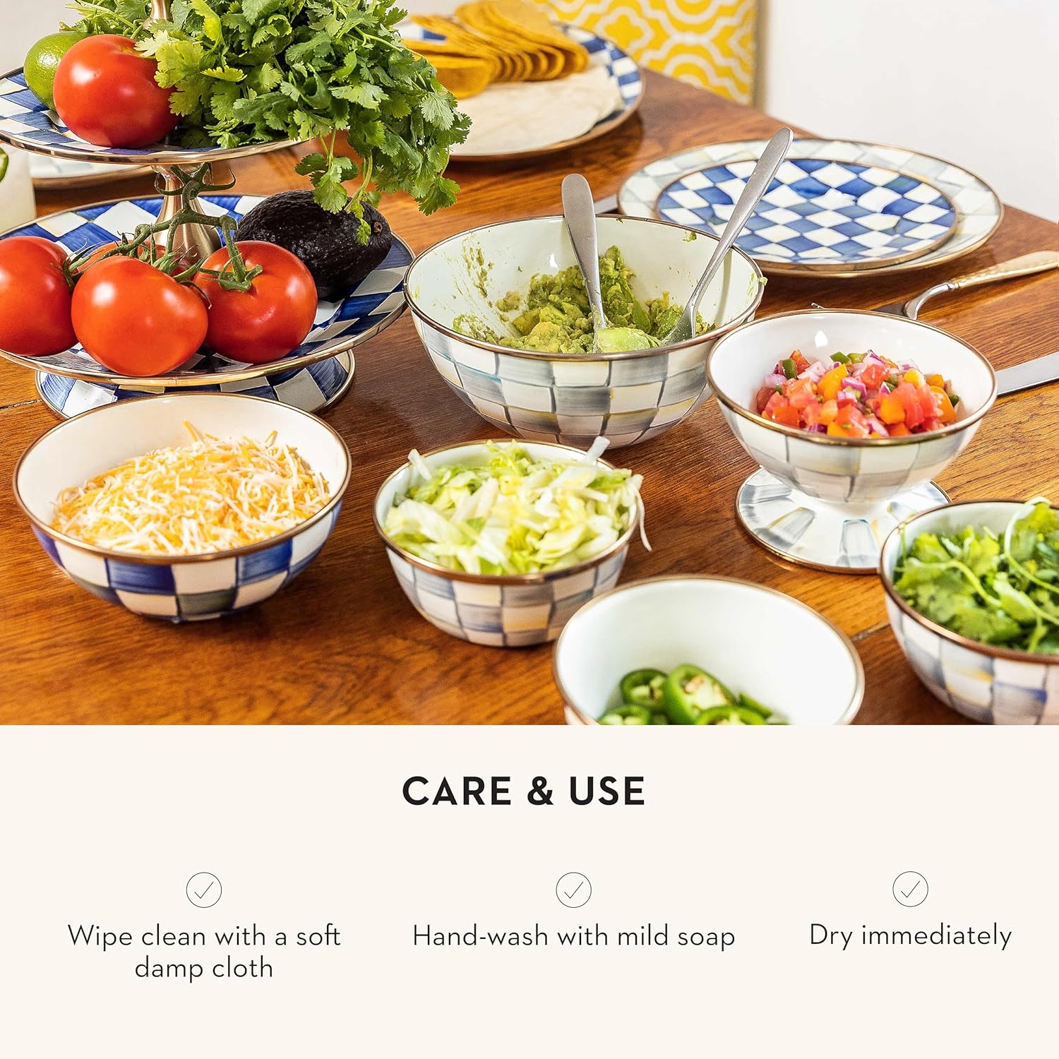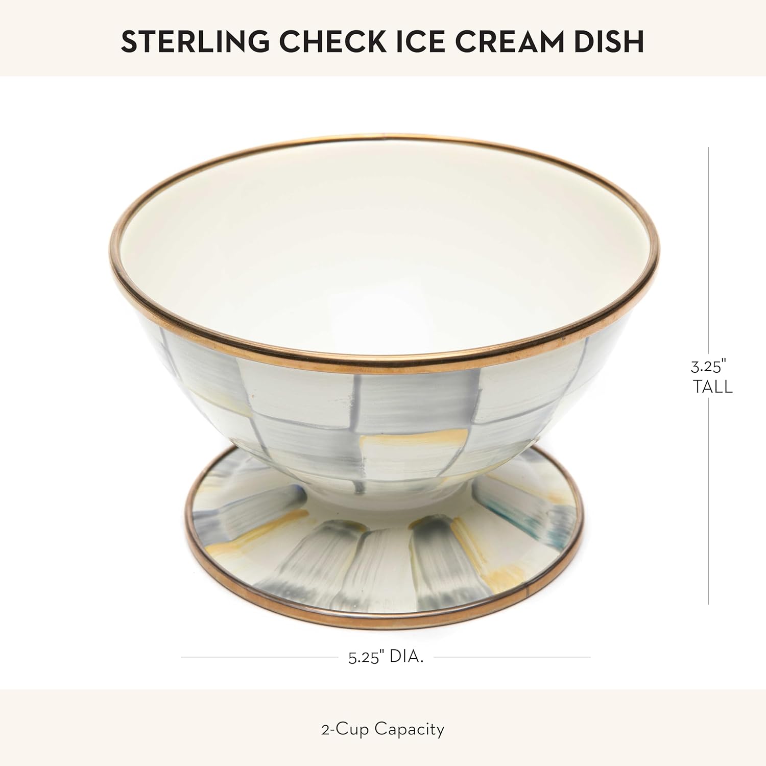MACKENZIE-CHILDS Enamel Ice Cream Bowl, Serving Bowls for Entertaining, 2-Cup Capacity, Gray-and-White Sterling Check