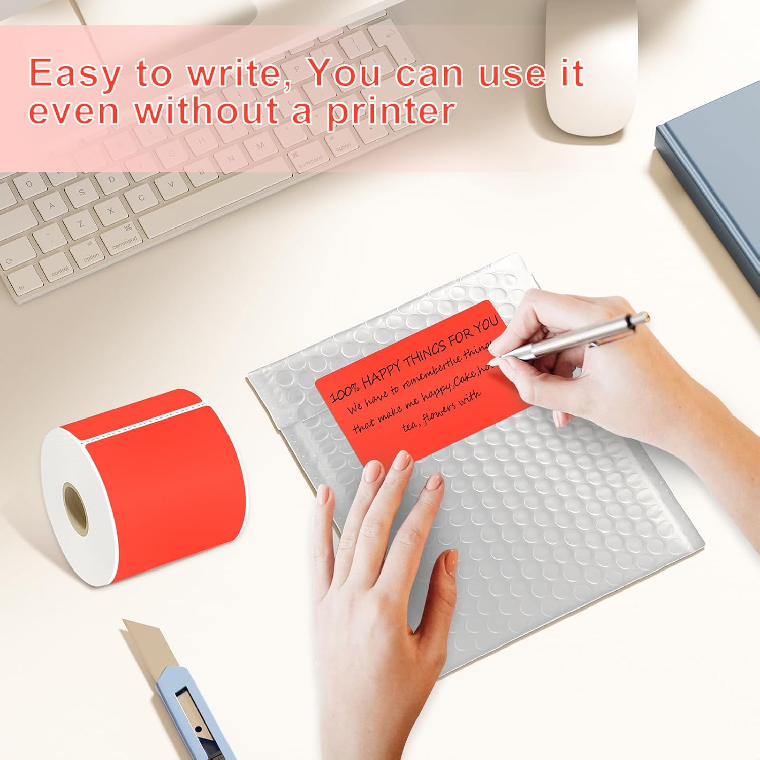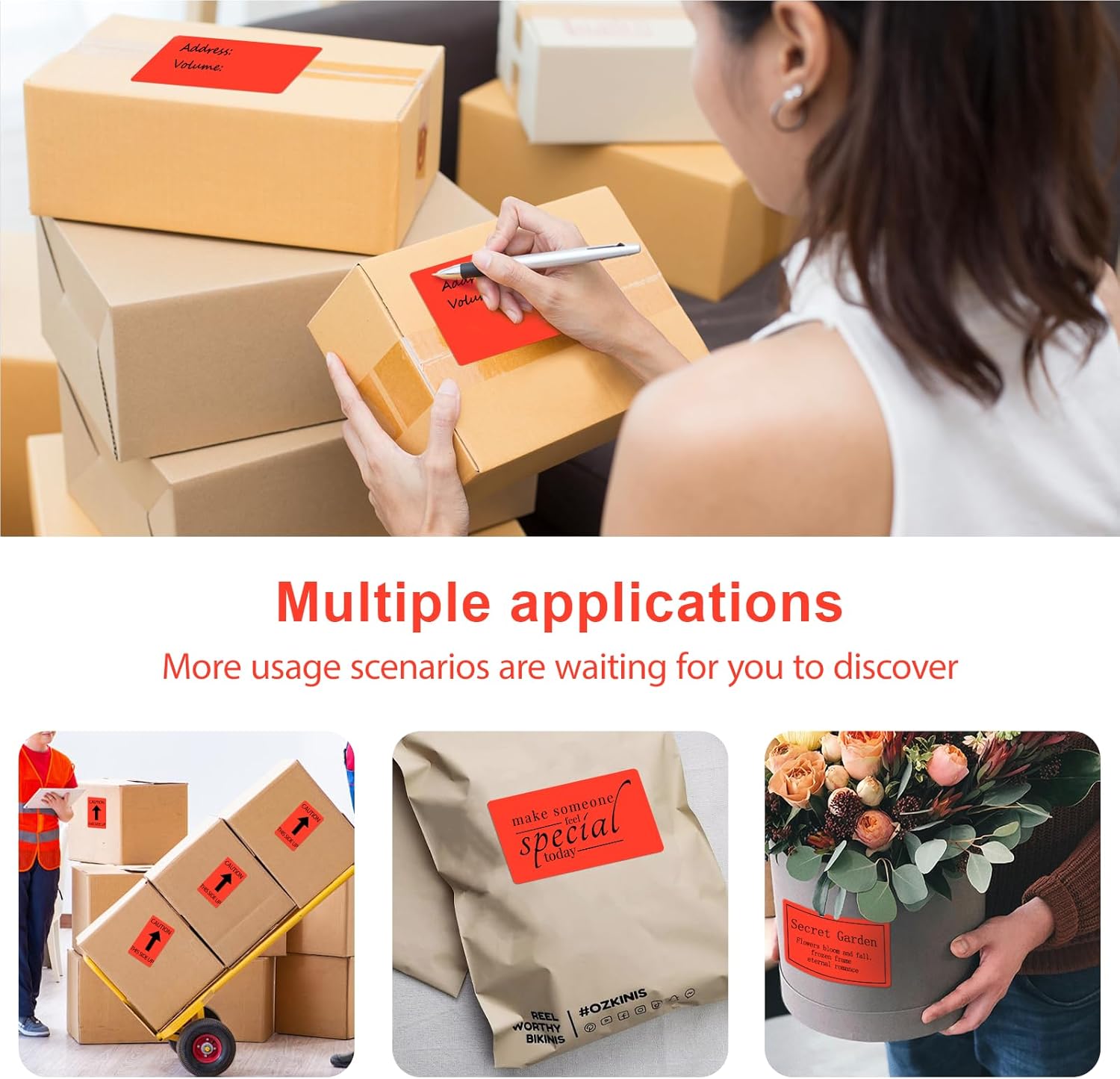 3 X 5 Inch Printable Rectangle Color Coding Labels, 300 Per Roll Adhesive Color Coding Stickers for Bar-Codes, Address, Small Business Labeling, Inventory, Fluorescent Red