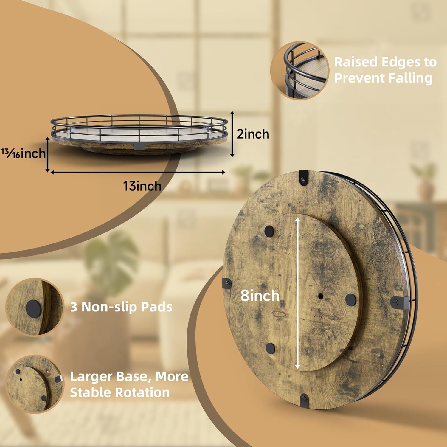 Lazy Susan Turntable Organizer for Table Top, 13’’ Round Wooden Lazy Susan for Cabinet Kitchen Countertop Pantry Dining Coffee Table for Condiments Spices, Rustic Bathroom Vanity Tray for Soap Candle