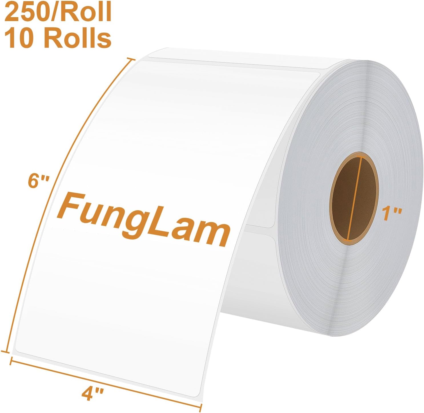 FungLam 10 Rolls 4"x6" Direct Thermal Printer Label, Shipping Labels Compatible with Zebra, Rollo and Most Thermal Printer, Perforated Postage Label Paper, 250 Labels/Roll