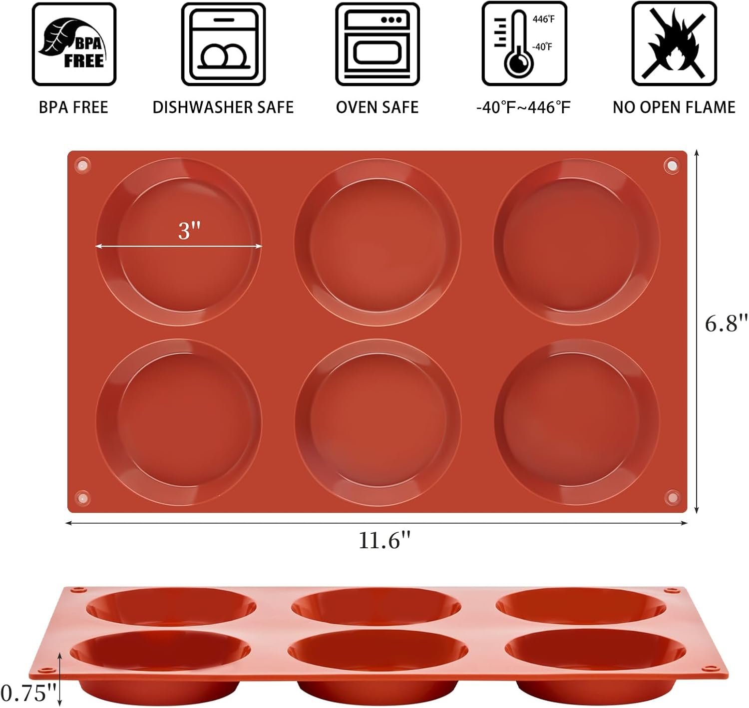 - Size: 2 pack silicone egg molds with 6 cavities, each cavity is 3 inches in diameter and 0.7 inches in depth, great for making muffin tops, cupcakes, cookies, whoopie pies, breakfast sandwiches and more.