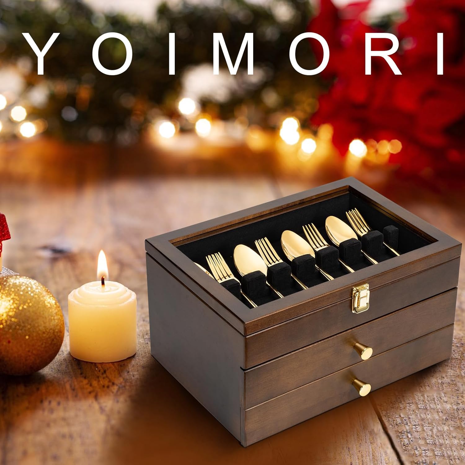 - Confidence: The wood silverware storage boxes size: 14.5x10.6×5.3inch. If you have any issue with Yoimori silverware boxes, feel free to contact us at any time.