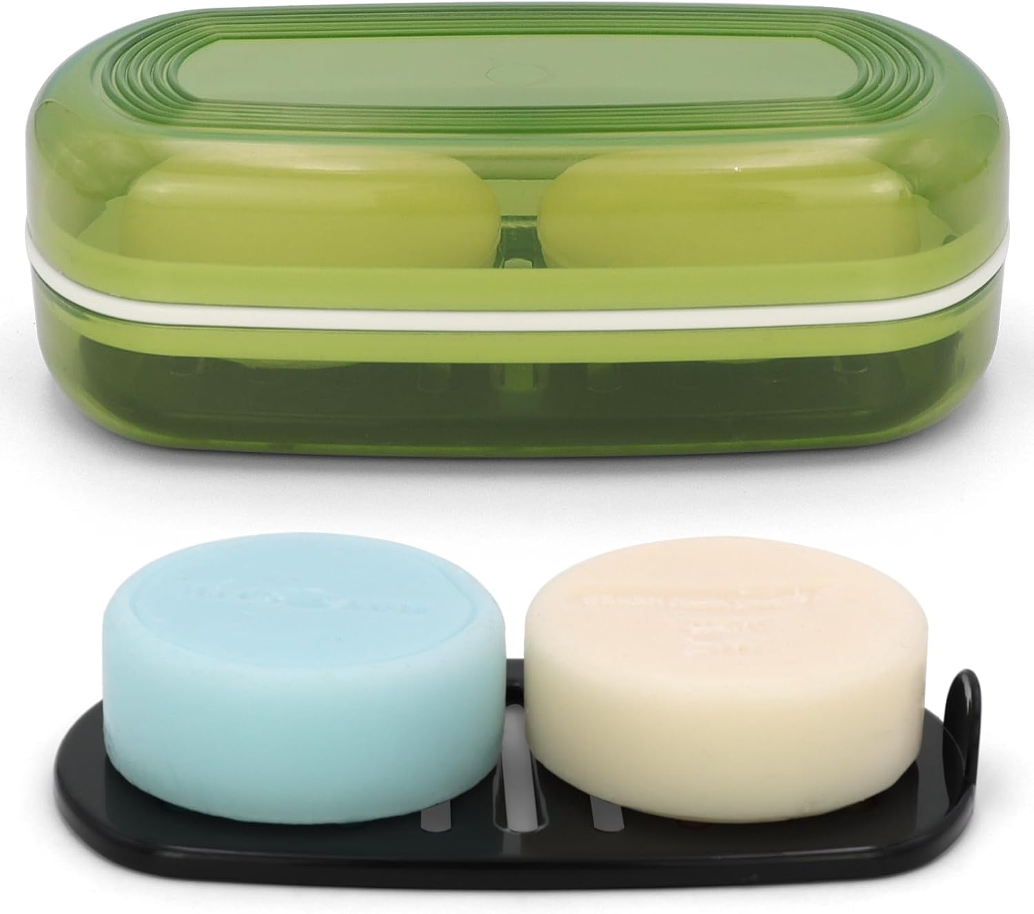 Shampoo Bar Holder Travel Case for Two Bars – Compatible with Kitsch Solid Shampoo & Conditioner Bars, Large Soap Container for Bathroom or Travel (Green Style A-Large)