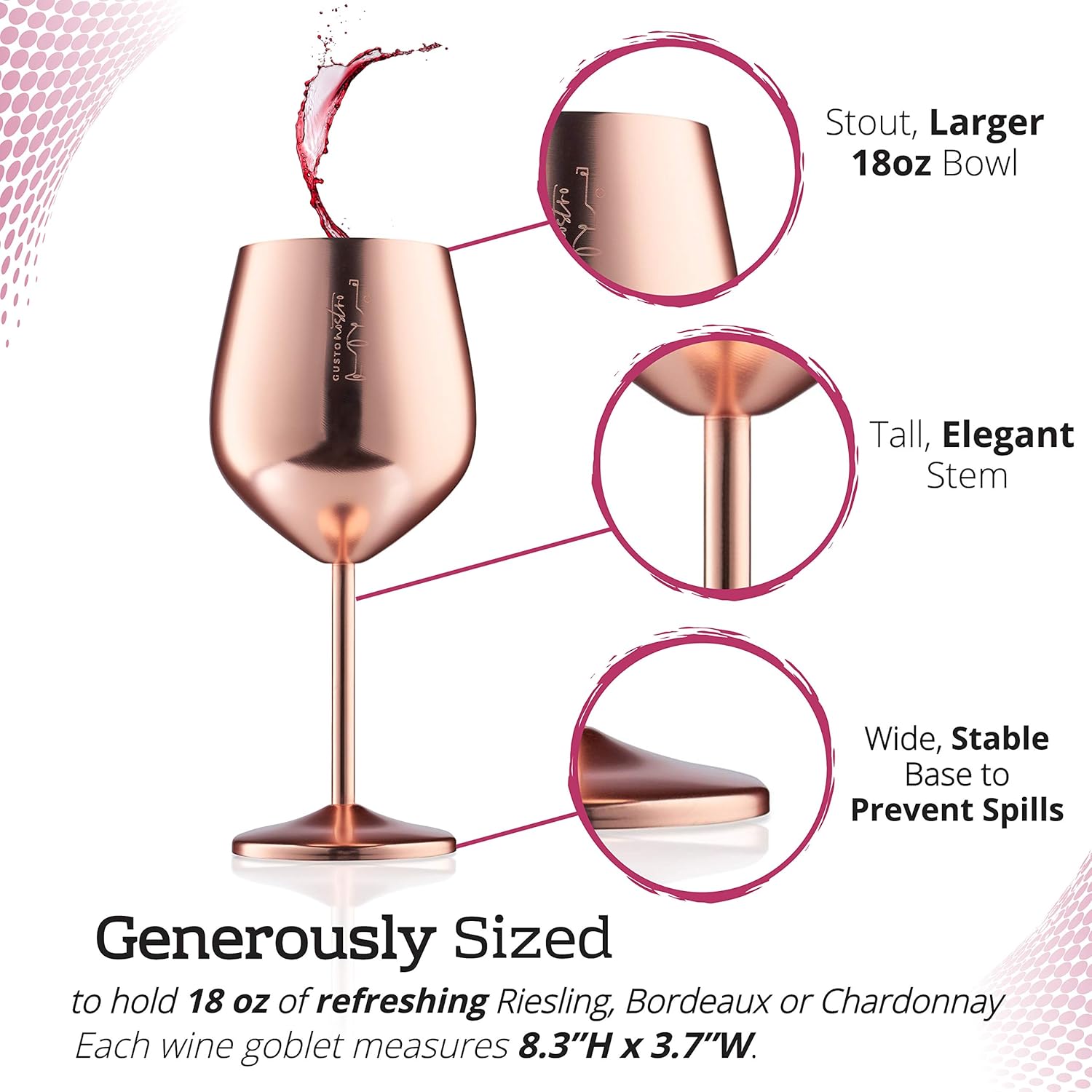 Gusto Nostro Stainless Steel Wine Glass - 18 oz - Unbreakable Rose Gold Wine Glasses for Travel, Camping and Pool - Fancy, Unique and Cool Portable Metal Wine Glass for Outdoor, Picnics (Set of 4)