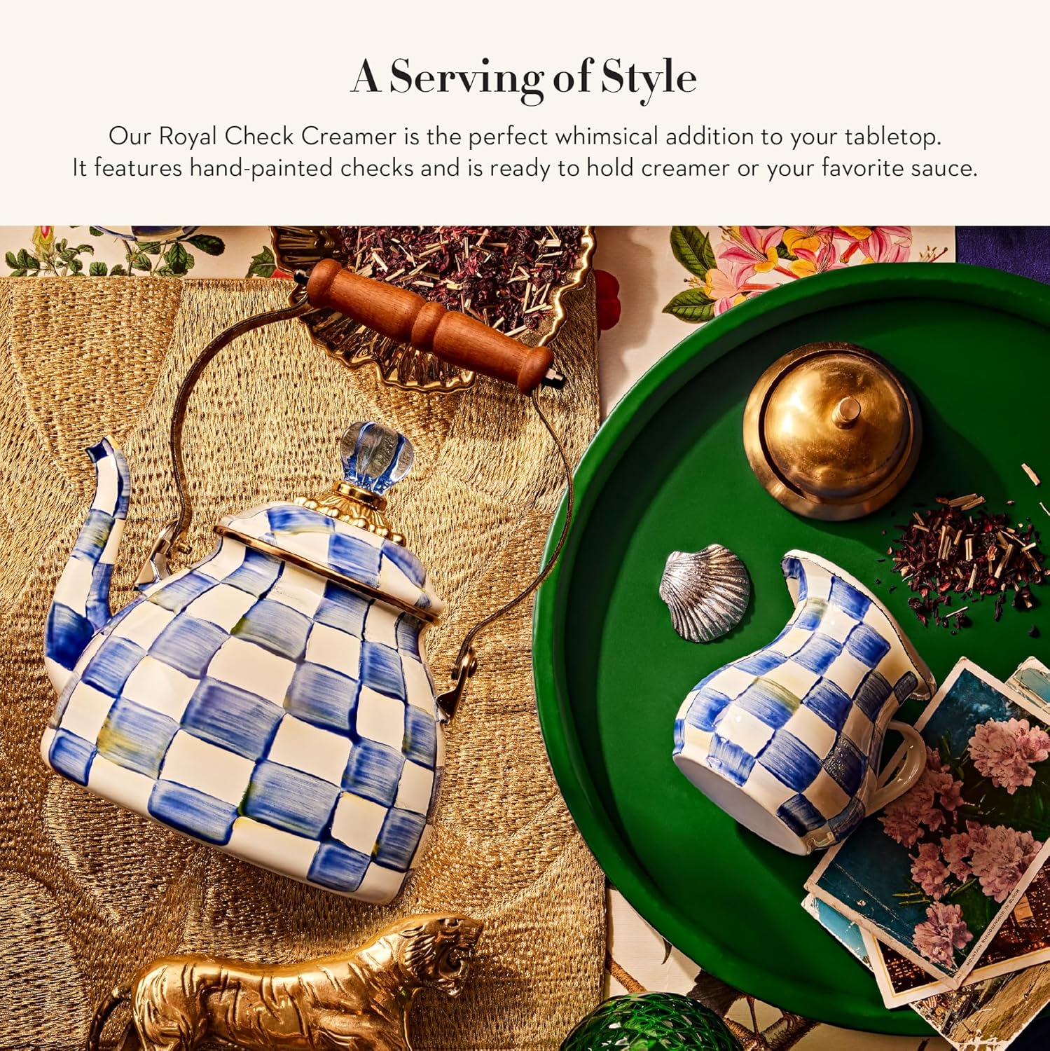 MACKENZIE-CHILDS Enamel Creamer, Creamer Dispenser with Pour Spout, Kitchen Enamelware, 14-Ounce Capacity, Blue-and-White Royal Check