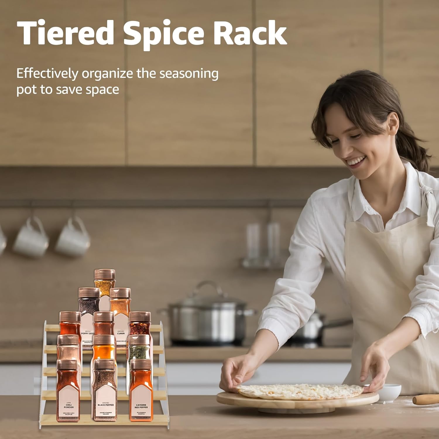 - Elegant & Sturdy: Risers display stands constructed from high-quality pine wood and corrugated acrylic, making it both aesthetically pleasing and fashionable, as well as durable and resistant to deformation, the spice shelf is a beautiful and robust addition to any space