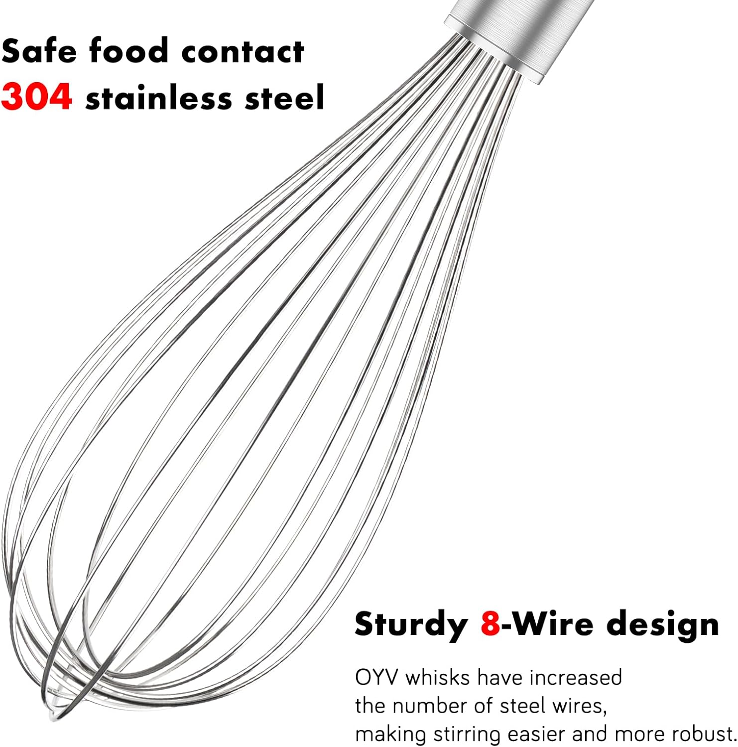 - ERGONOMIC EXCELLENCE: OYV's wire whisk handle is designed for comfort and safety, resistant to chemical reactions, with a sleek, modern look. It’s both functional and attractive, making it easy to use and maneuver in any kitchen task