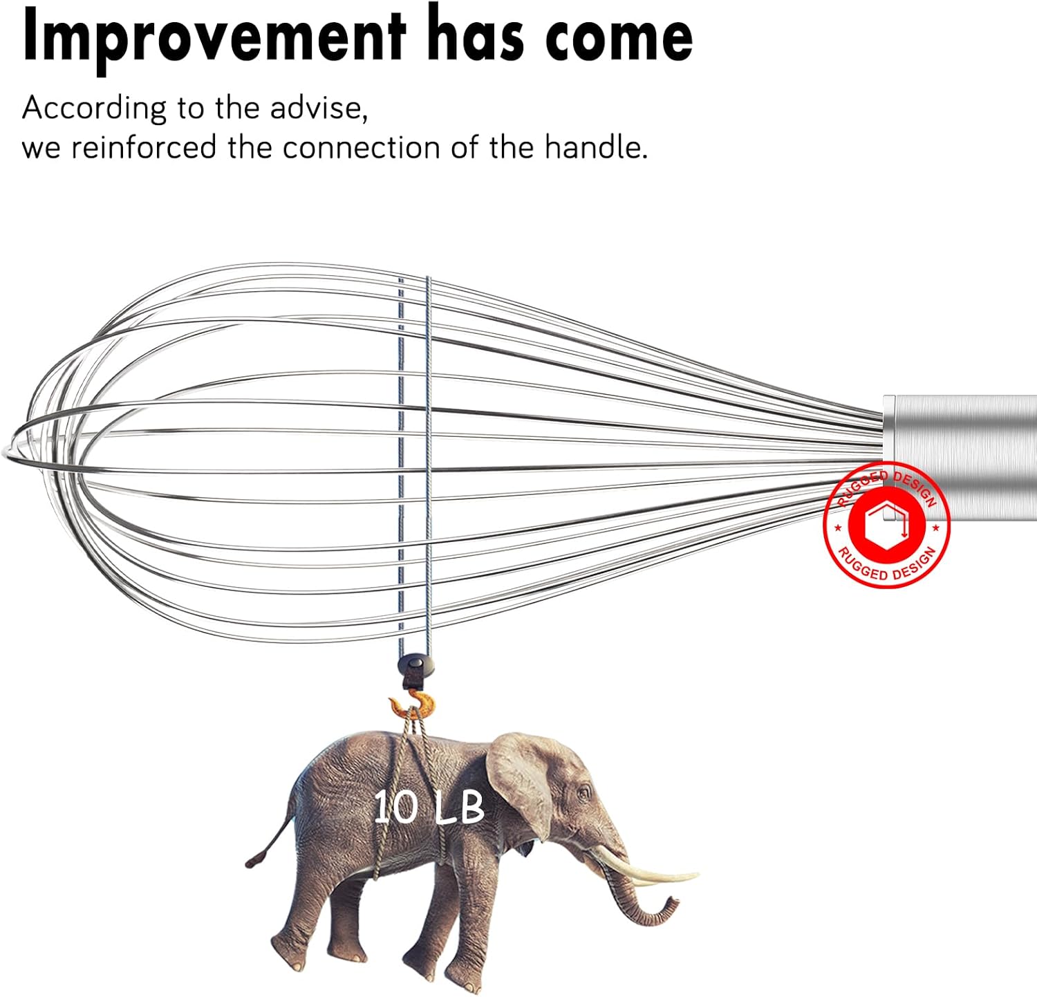 - RUST-RESISTANT DURABILITY: Crafted from high-quality 304 stainless steel, our stainless steel whisk set is a robust build with 8 thick wires, ensuring they stay rust-free, unbending, and unbreakable for superior mixing