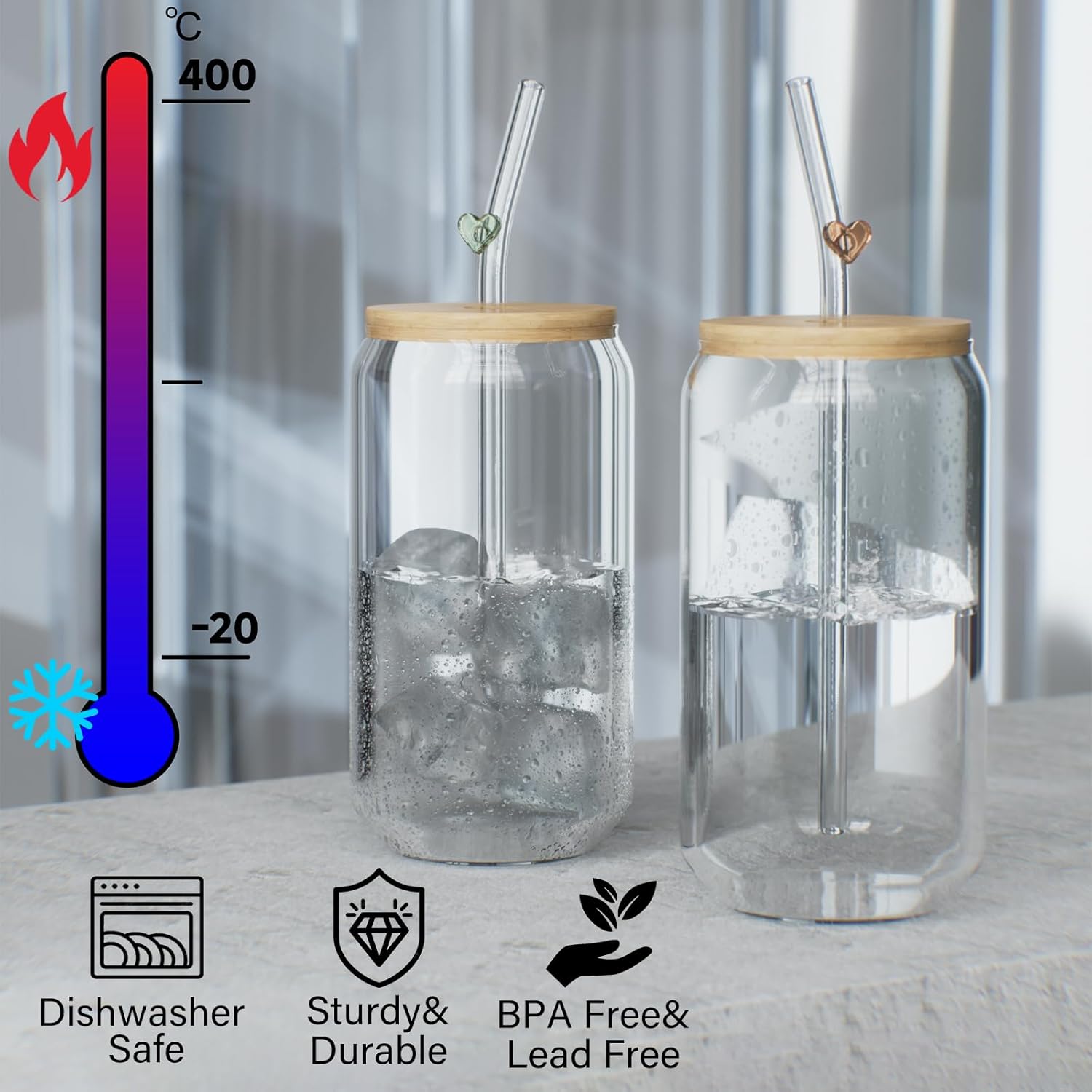 - Every straw is unique because our clear glass straws with glass heart-shaped decor, are individually handcrafted from top-notch high borosilicate glass. They're lead-free, totally non-toxic, and BPA-free. These straws for tumblers can handle any temperature, from a chilly -68Β°F to a scorching 753Β°F. Therefore, it work great for hot or ice drinking.