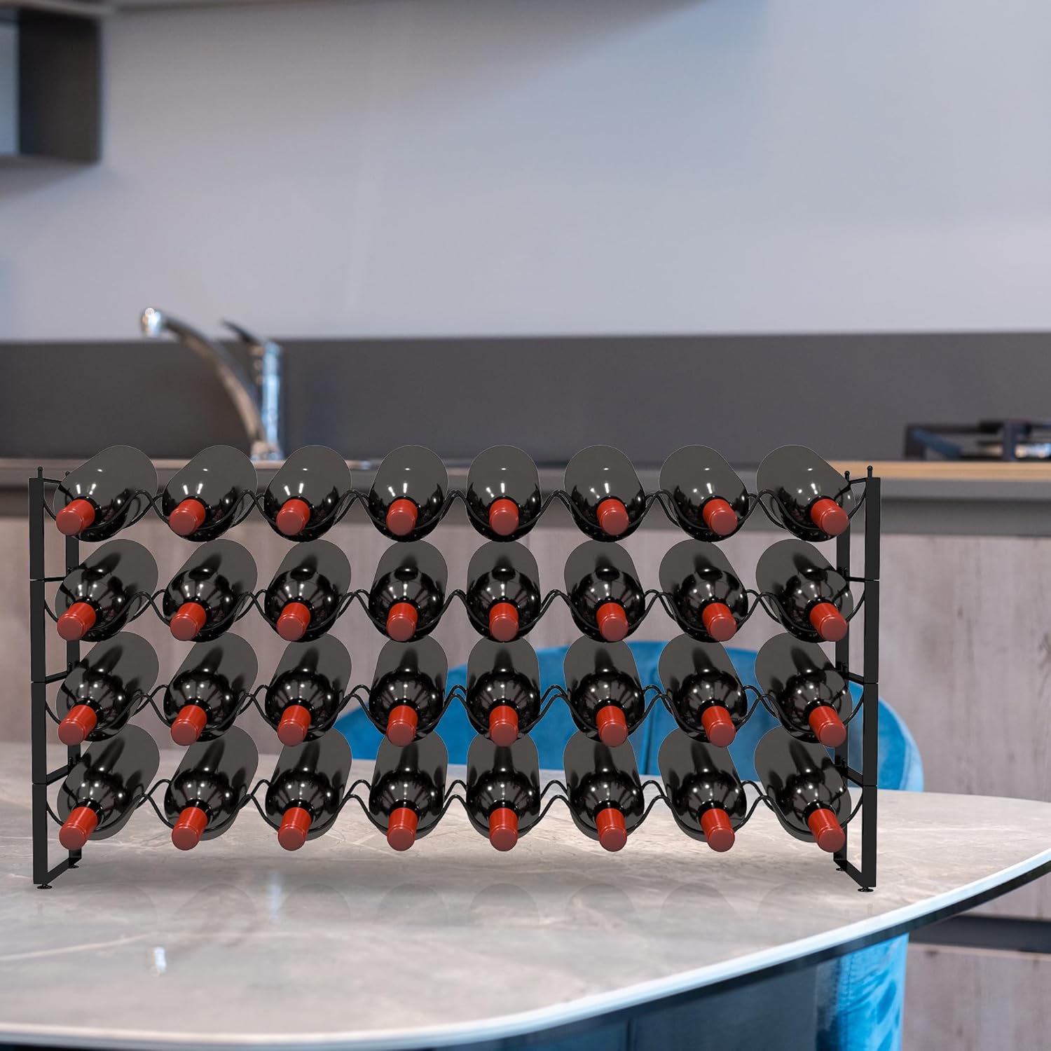 TONLEA 4 Tier Wine Rack, 32 Bottle Storage, Stackable Wine Rack for Cabinet Pantry (Dark Black)
