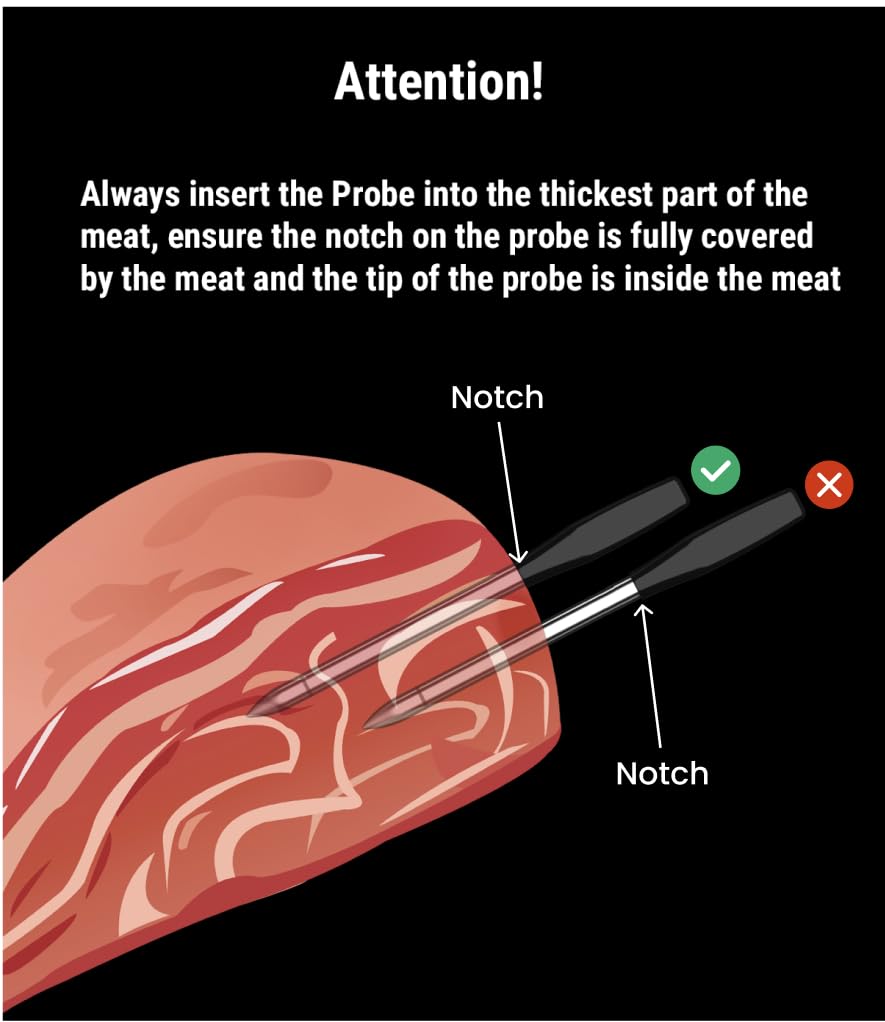 - 【100% Wire-Free & Waterproof Probe】Say goodbye to annoying Wires! 100% Wire-Free meat probes are easier to use and store, making this cooking thermometer for meat more suitable for rotisserie than other wired thermometers; The IPX8 waterproof rating makes the product safer against water damage, effectively extending the product's service life
