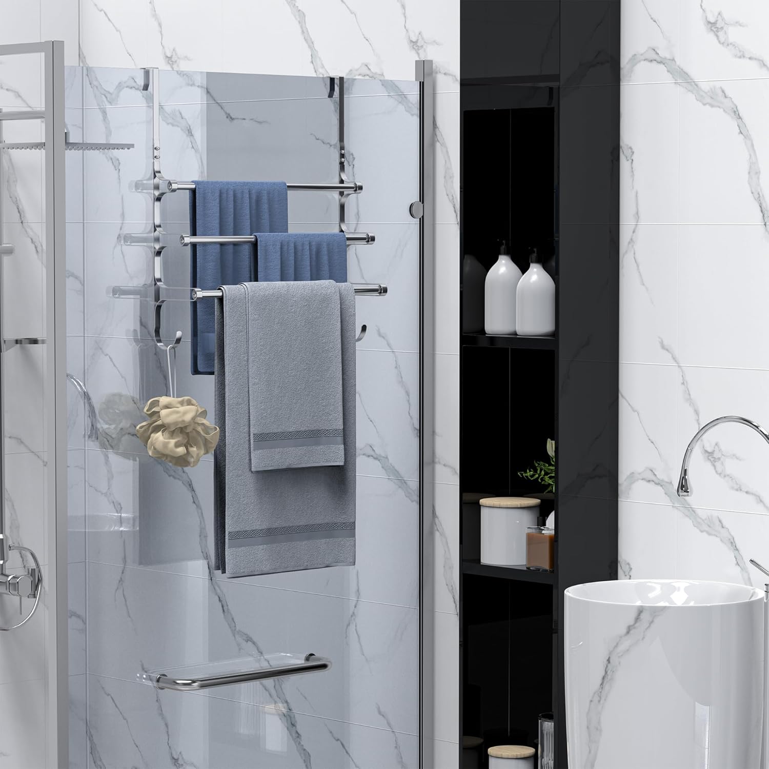 Over The Door Towel Rack, Over Door Towel Rack for Bathroom Door, Triple Towel Storage Holder with Hooks (Silver Gray, 17.32" L)