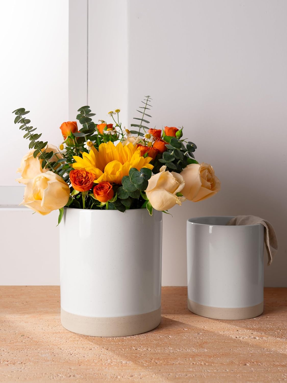 famiware Milkyway Kitchen Utensil Holder for Countertop, 7.2"+5.8" Ceramic Cooking Utensil Crocks for Counter, Utensil Organizer for Spatula & Spoon, Kitchen Decor, Set of 2, White