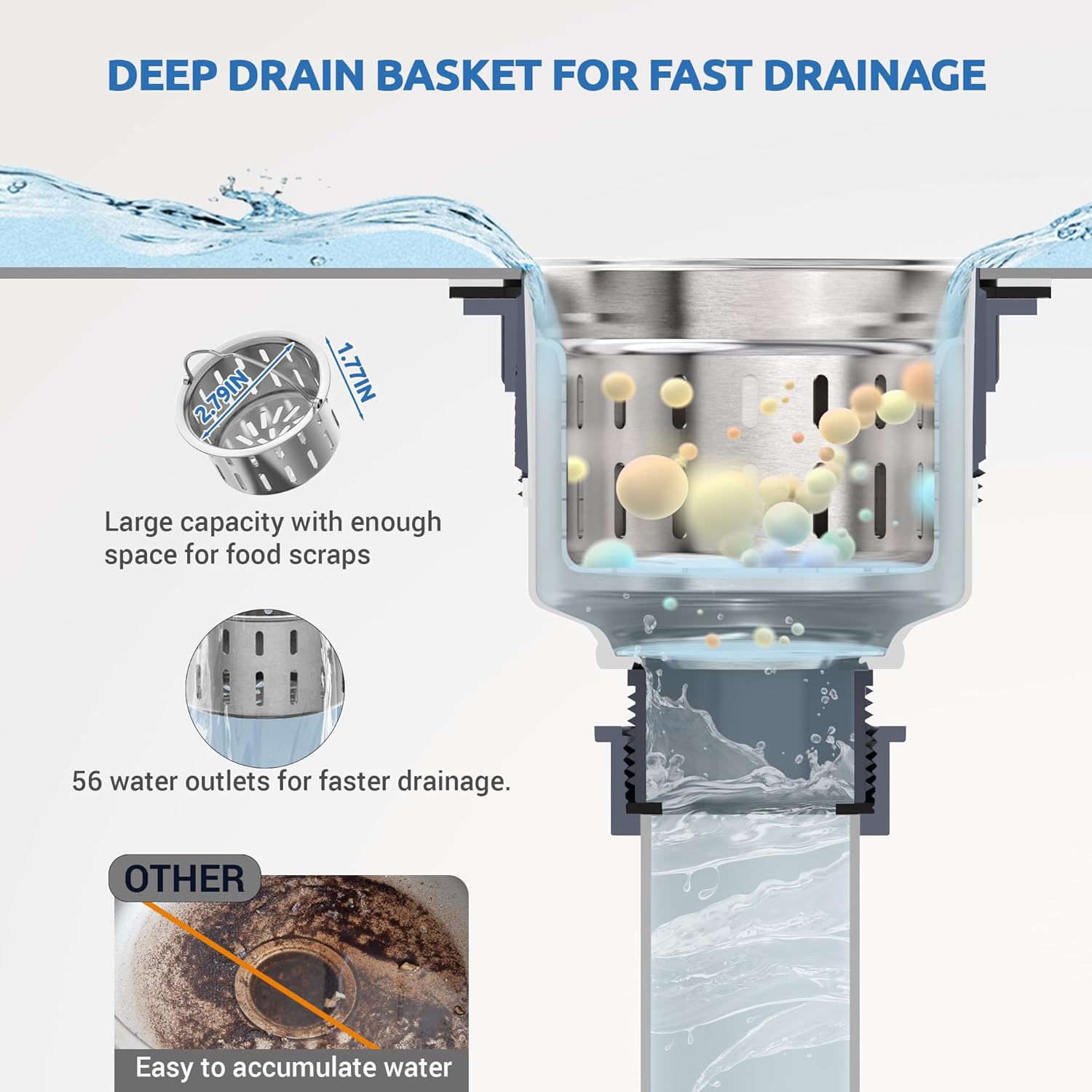 - DURABLE STAINLESS STEEL: The kitchen sink drain is made of premium 304 stainless steel for durability and resistant to rust and corrosion to provide reliable filtration for years to come (NOTE: It can not be connected to the garbage disposal.)