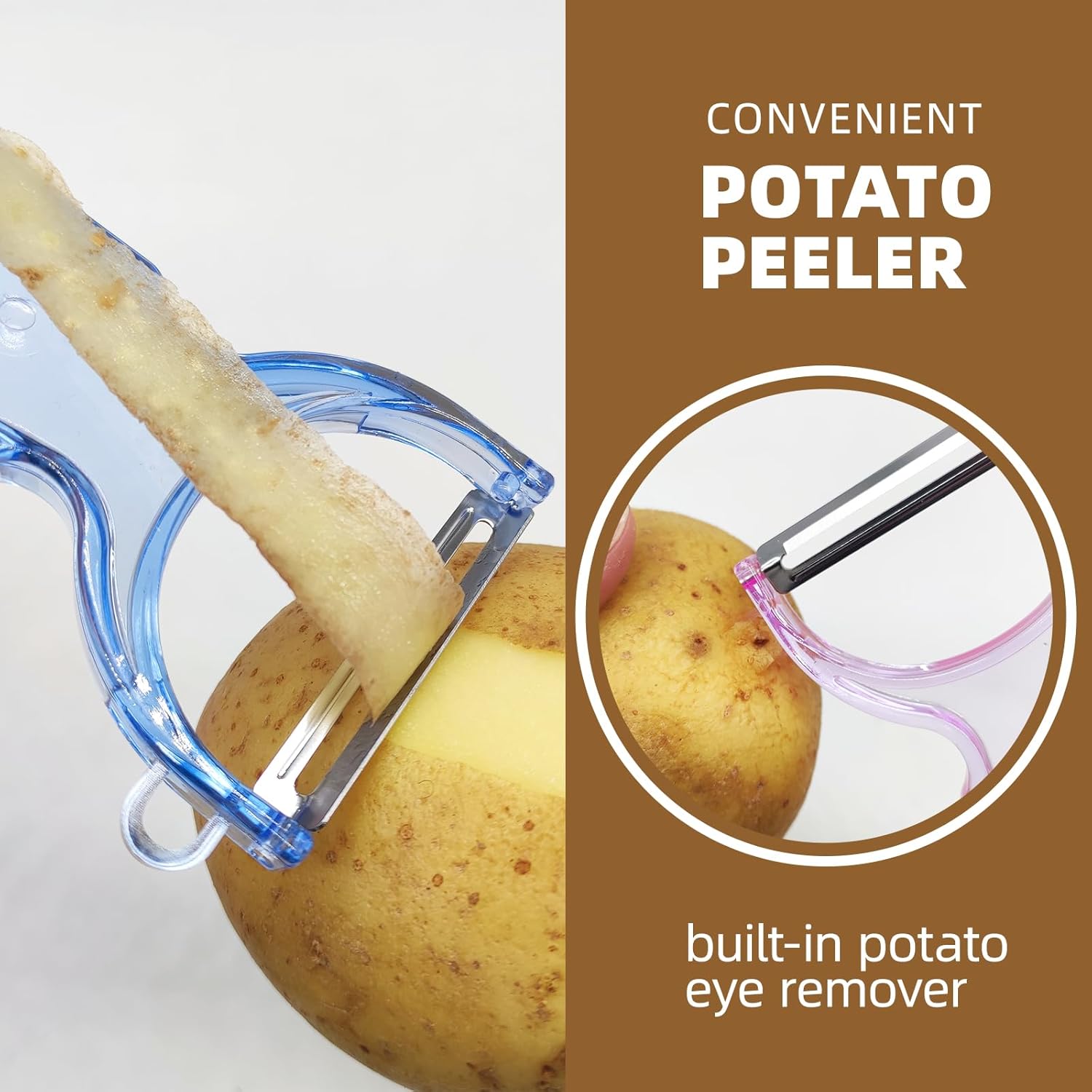 - 🍅【3-Pack Fruit Vegetable Peelers for Kitchen】 It is the best P potato peelers for apple,peaches, tomatoes, zucchini,vegetables,potatoes, cucumbers, squash, carrots, eggplant,pears.With built-in potato eye remover, it is a high quality kitchen potato peeler, however, it may not be ideal for produce with softer skins such as oranges and corn.