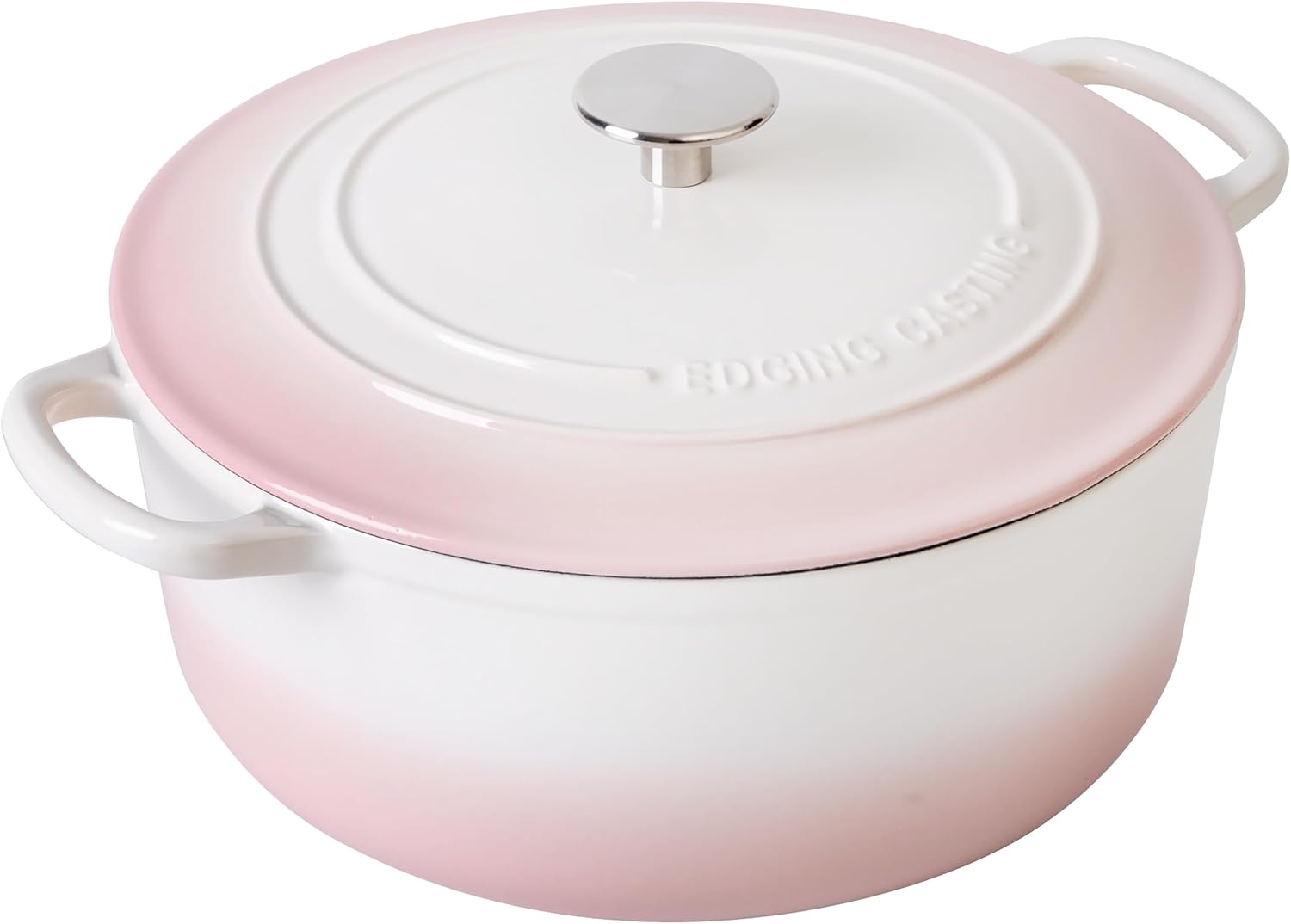 Enameled Cast Iron Dutch Oven Pot With Lid, 7 Quart, for Bread Baking, Cooking, White-Pink