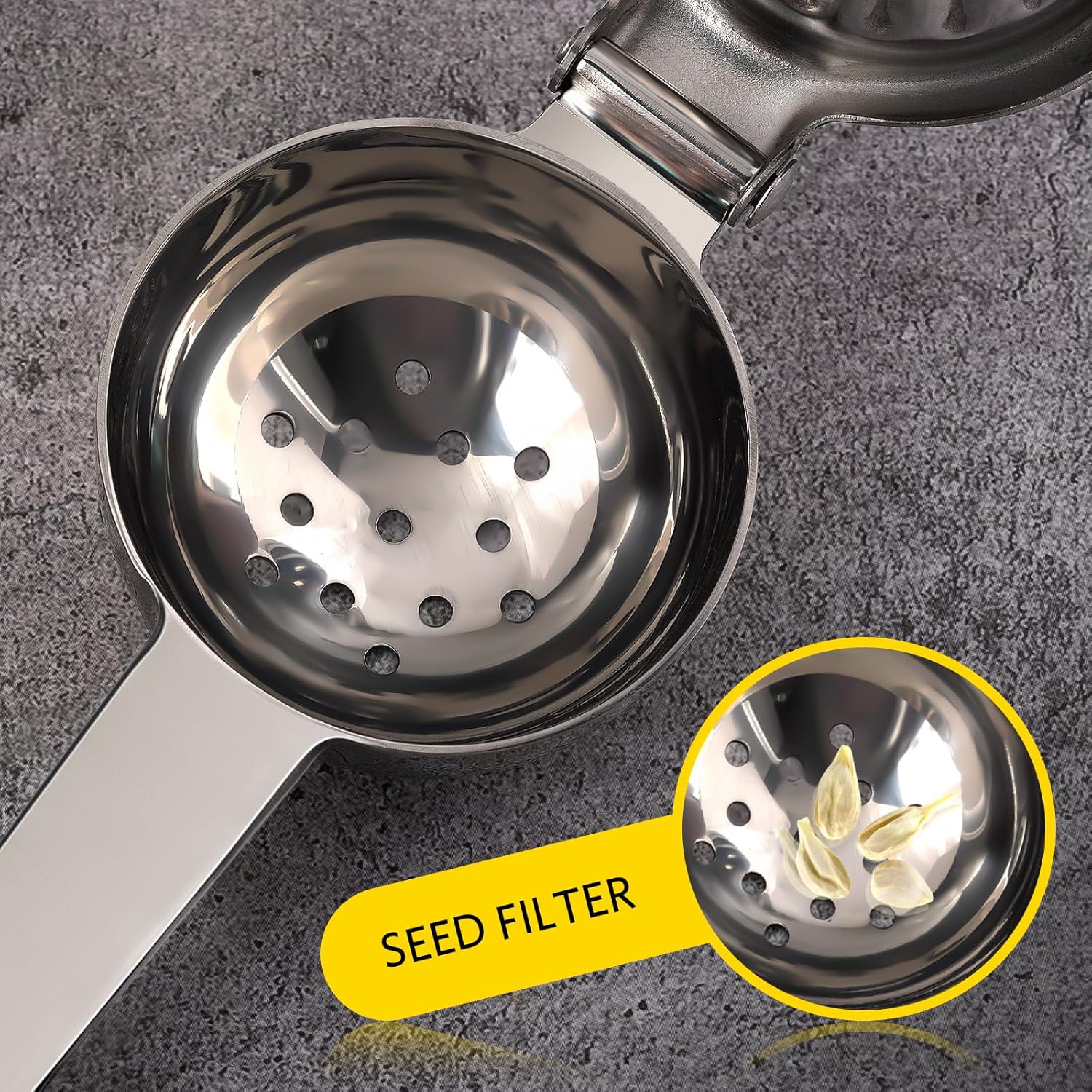 - Maxium Strength for Professional Extraction: The Lemon juicer squeezer is purpose-built for optimal juicing. Testing proves it can extract 10%-15% more juice compared to typical brands, leaving no drop of lemon juice behind, eliminating any waste. With its built-in seed filter, you get a truly pure glass of lemon juice, without any seed or pulp interference. Whether it's for home use or entertaining friends, it delivers