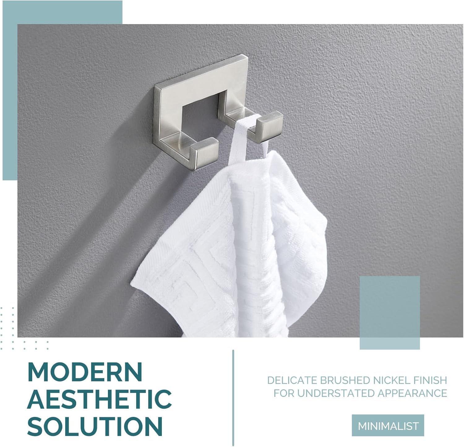 Angle Simple Double Towel Hook Brushed Nickel, 304 Stainless Steel Robe Coat Hook for Bathroom, Wall Mount