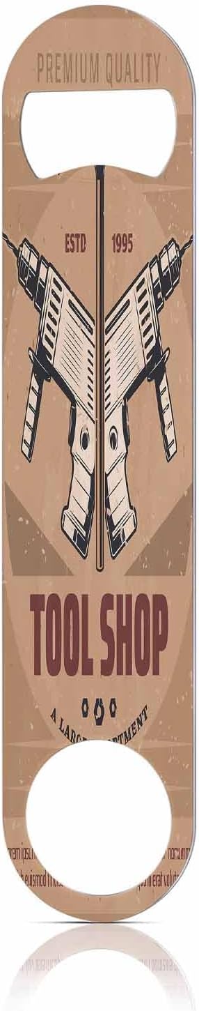 Tool Shop Stainless Steel Bottle Opener Carpentry Electric Drill and Hammer Brown Retro Poster Flat Beer Bottle Opener Keychain for Home Kitchen Bar Restaurant Party Birthday Gift
