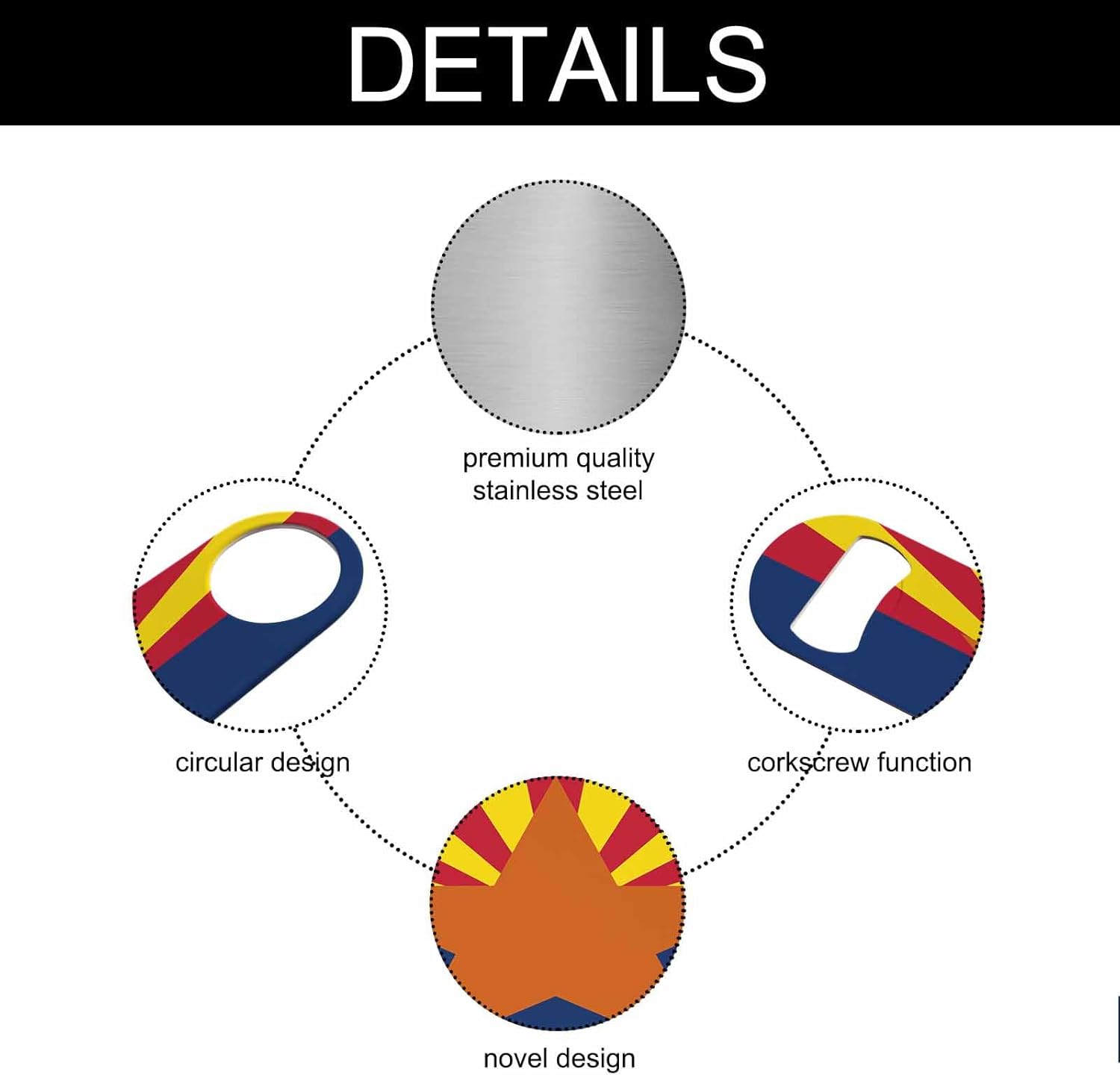 USA Flag Stainless Steel Bottle Opener Vintage America Arizona State Flag Blue Red Color Freedom Modern Flat Beer Bottle Opener Keychain for Home Kitchen Bar Restaurant Party Birthday Gift
