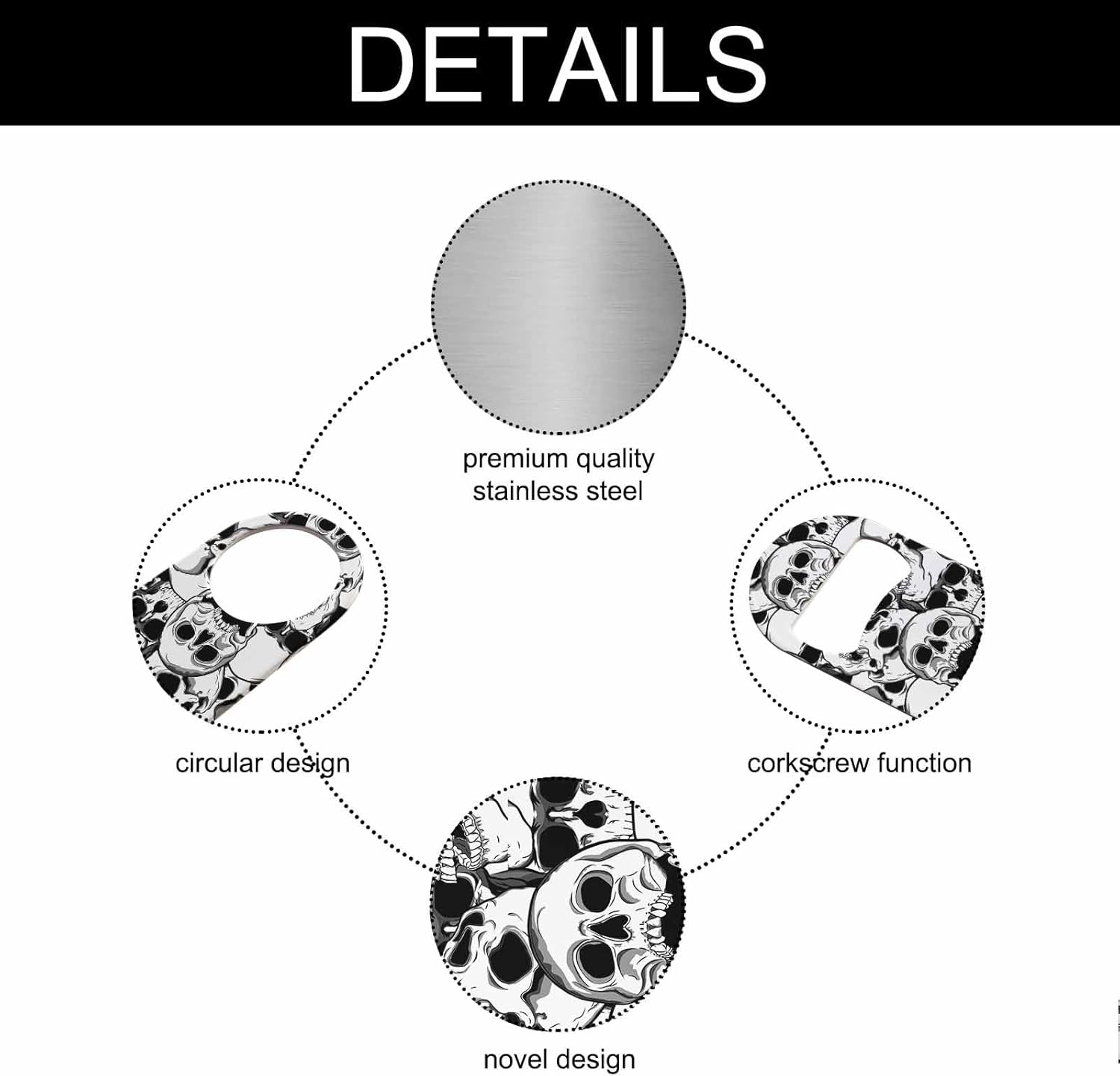 - Premium Material: Our skull bottle opener is made of stainless steel, sturdy for long-term use.