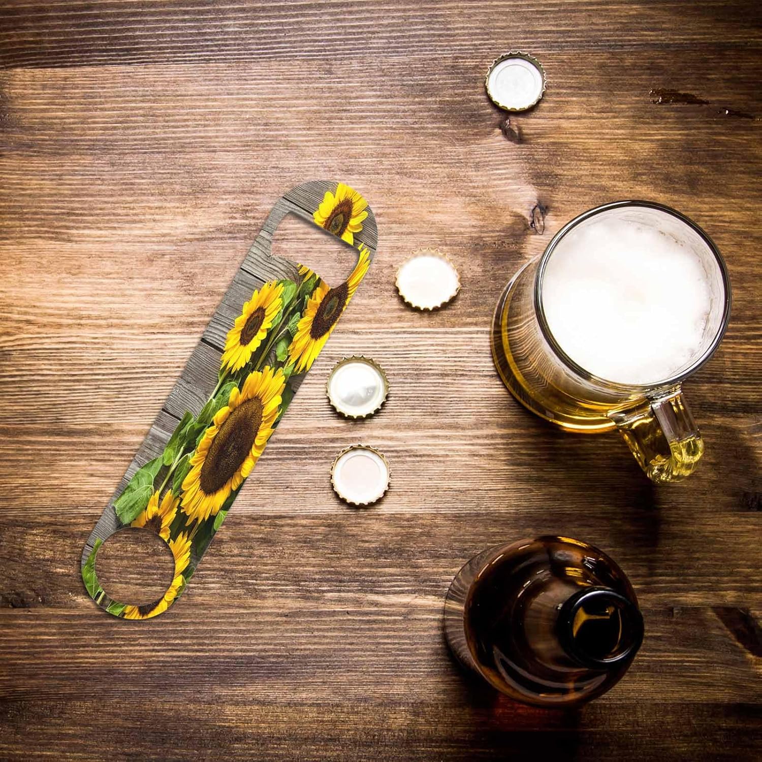 Sunflowers Stainless Steel Bottle Opener Wooden Board Yellow Flower Rustic Fence Natur Color Simple Flat Beer Bottle Opener Keychain for Home Kitchen Bar Restaurant Party Birthday Gift