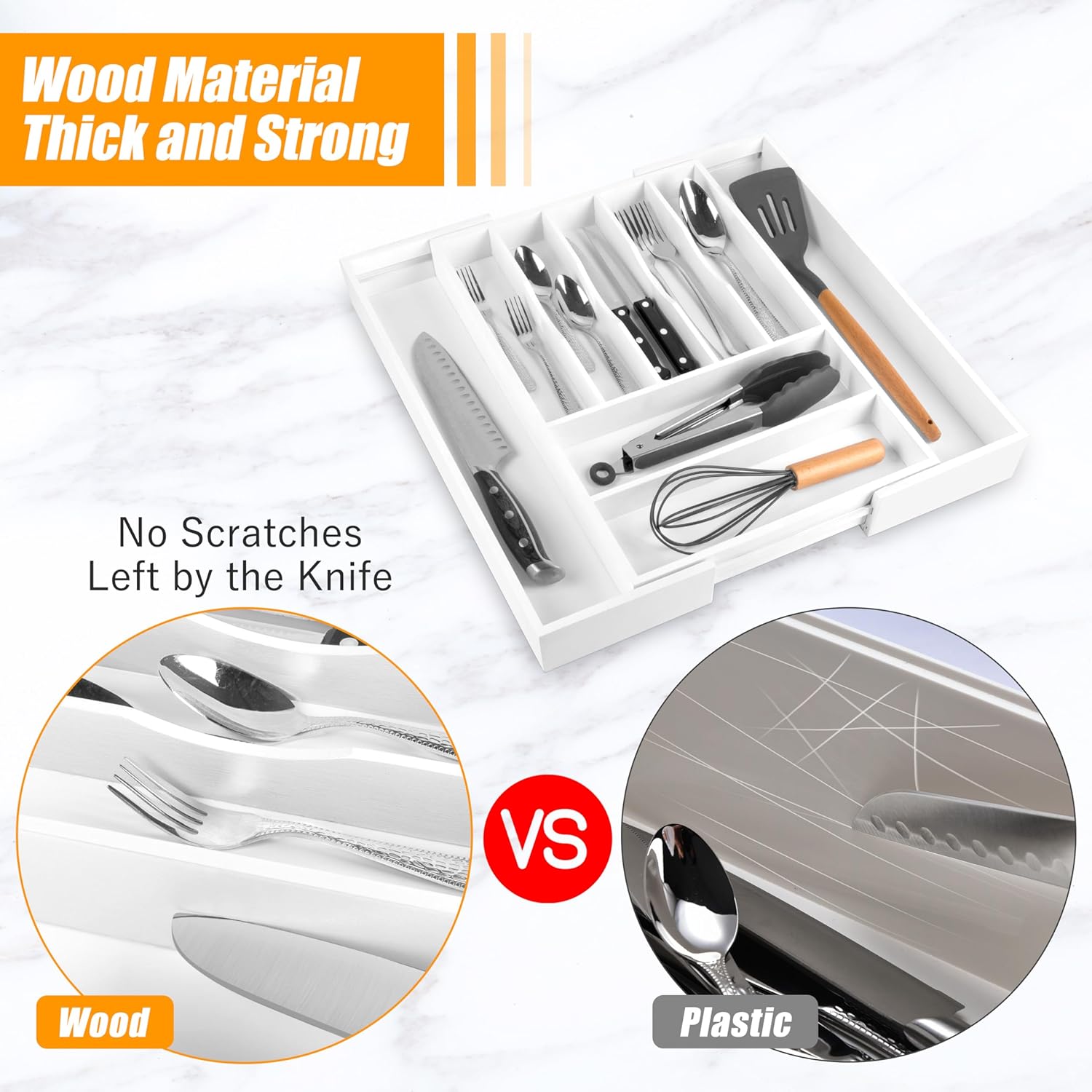- ✅【Quality - Deep Compartments & Reinforced Base】Our utensil drawer organizer features compartments with a depth of 1.9 inches, helping maximize drawer space and perfect for storing more essential tools and gadgets. The utensil silverware drawer organizer comes with a reinforced base, ensuring durability for long-term use, and is ideal for supporting the weight of heavy-duty utensils and knives. Keep everything you need conveniently at hand while cooking, neatly visible, and easy to grasp when preparing the next meal in the kitchen.