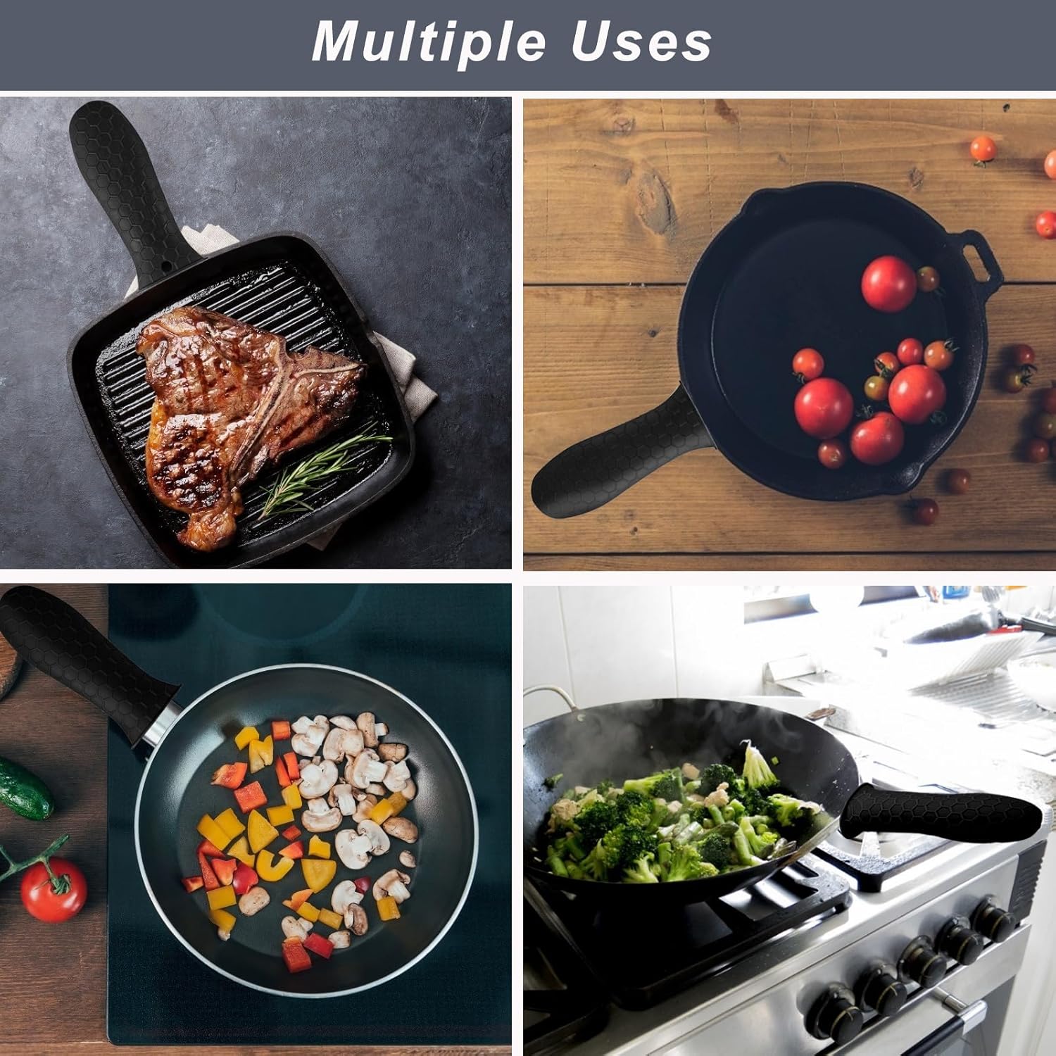 - Non-slip design: pot holders covers and heat resistant pot holder sleeves can fit your cast iron frying pan snugly; Anti-slip texture and internal silicone ribbing on the handle ensure security of moving heavy hot pans, which can effectively prevent falling; They are easy to slide on and off, can be stayed securely in place while using