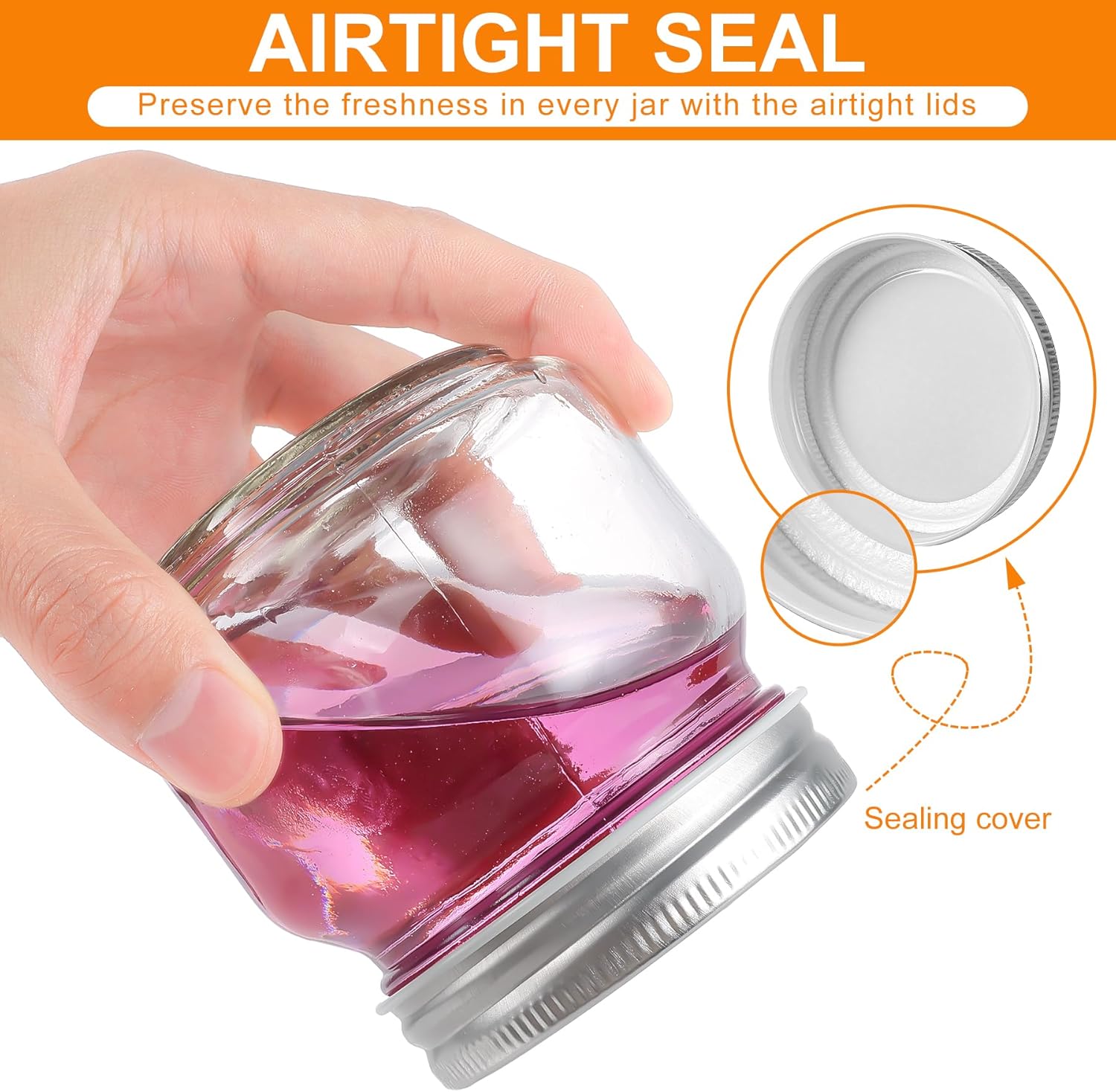 - SEALED STORAGE: Equipped with silver lids, these mini mason jars offer secure and airtight storage for your homemade preserves, pickles, and spices. The tight seal prevents air and moisture from entering the jelly jars/ jam jars/spice jars/overnight oats jars, ensuring that your food items stay fresh for longer periods.