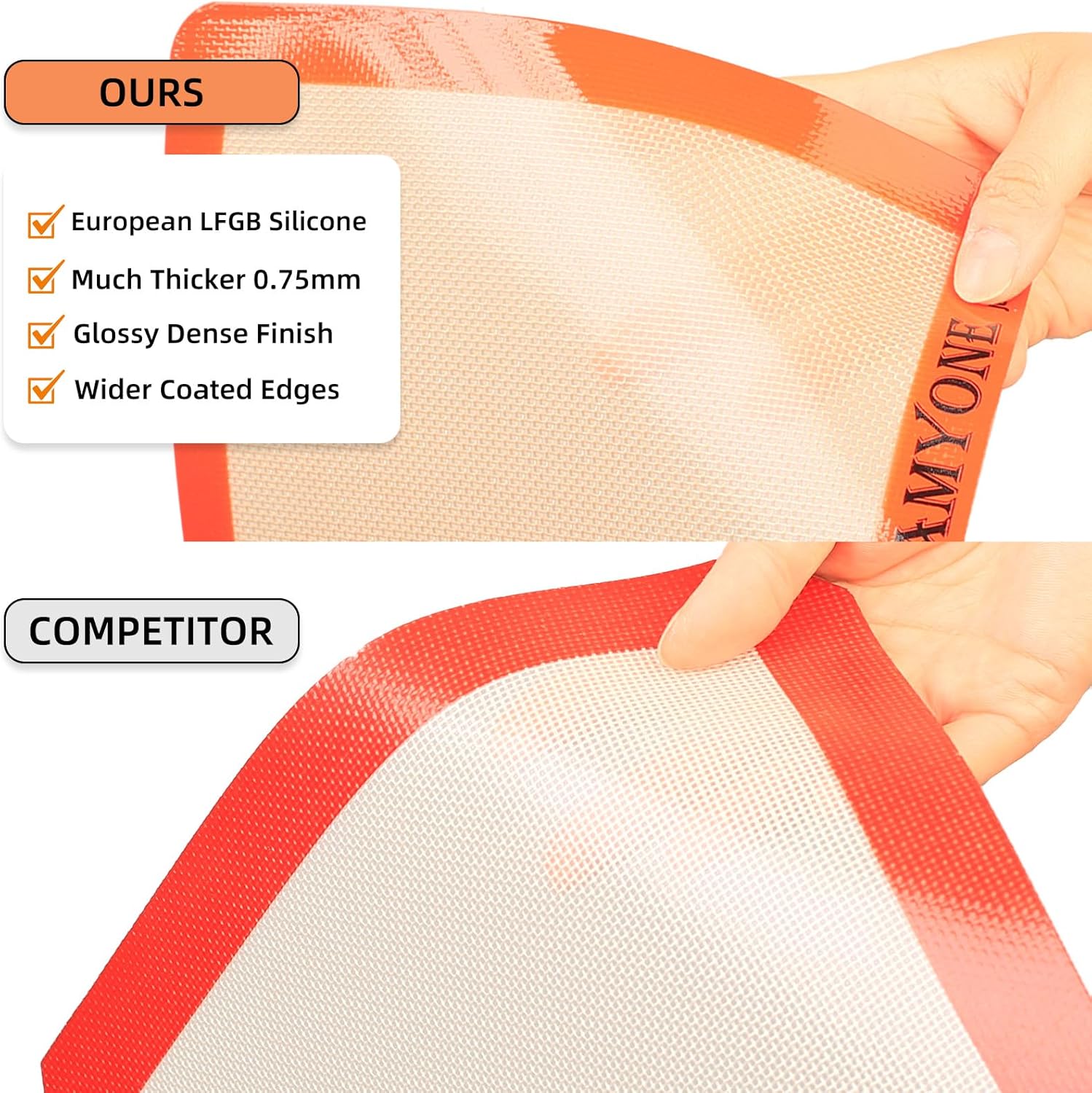 - 🥖【HEAT RESISTANT & VERSATILE】With a thickness of 0.75mm and with glossy dense finish as well as wider coated edges, these baking mats for eighth sheets, are designed to withstand temperatures ranging from -40°F to 480°F (-40°C to 249°C), making it suitable for a wide range of baking needs. From delicate pastries to hearty bread, it delivers consistent results every time.