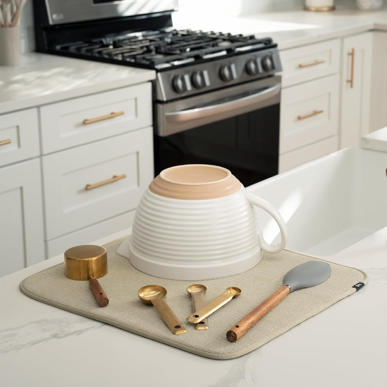 - Dish drying mats for kitchen counter are reusable, machine washable, and easy to store for kitchen organization; durable construction will not chip or break like a stone dish drying mat for kitchen