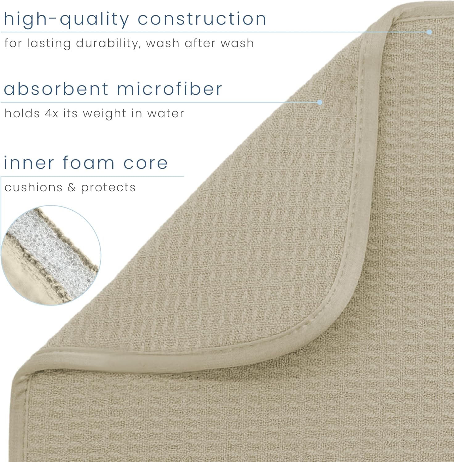 - One S&T INC. Microfiber Dish Dry Mat measuring 16 in. x 18 in.; kitchen mat for countertop absorbs up to 4 times its weight in water to keep your countertop dry, unlike a silicone dish drying mat