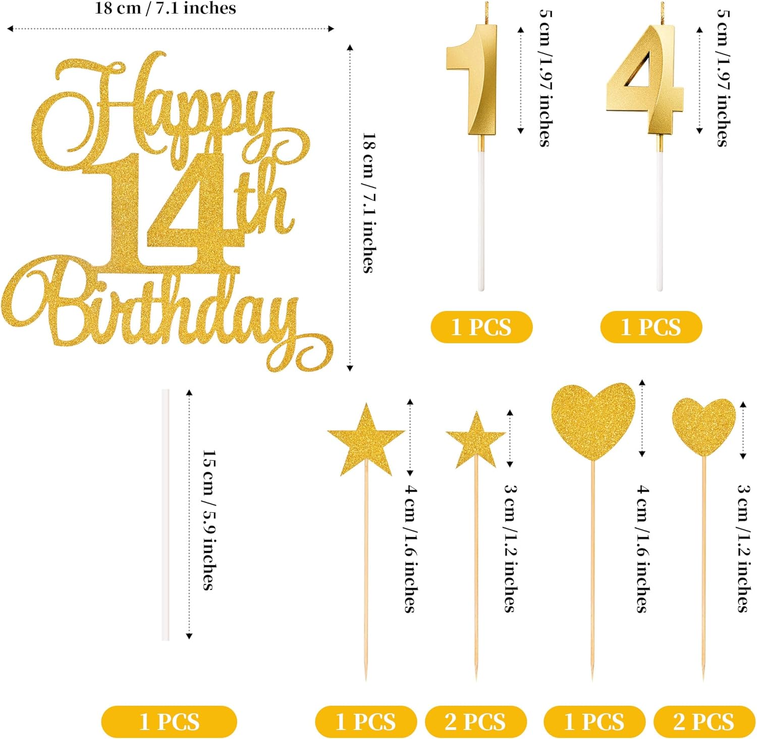 • Package content: you will receive 1 piece happy 14th birthday topper, 3 pieces star cake toppers, 3 pieces heart cake toppers and 2 pieces numeral candles, it's a great addition to the 14th birthday party and anniversary party