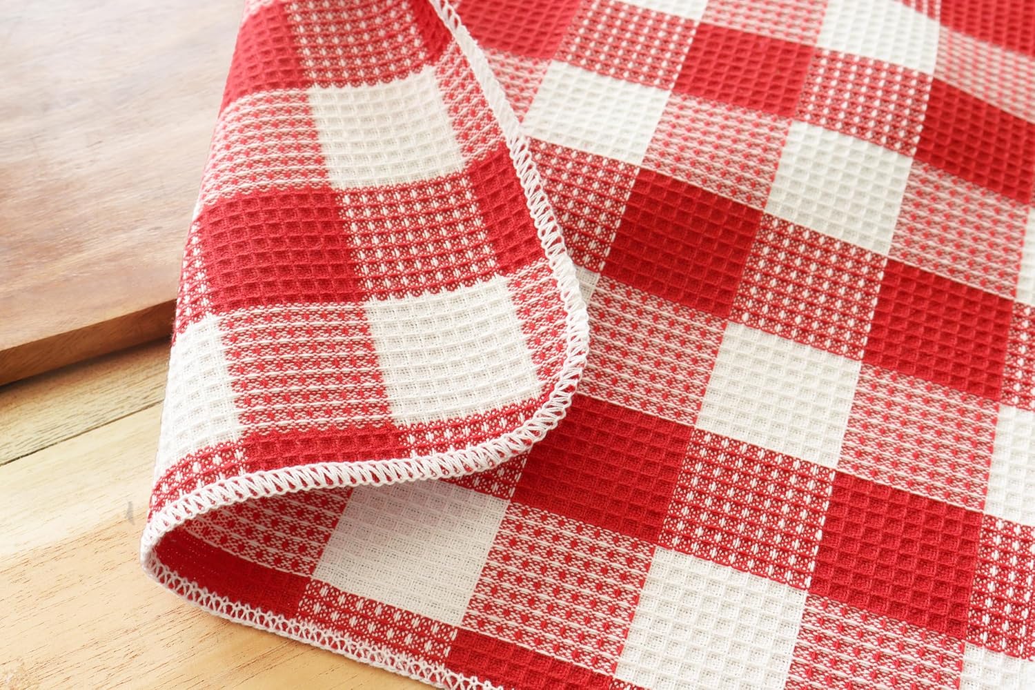 PurpleEssences Waffle Weave Plaid Dish Cloths, 100% Cotton - 12 x 12 Inches, Ultra Soft Absorbent Quick Drying Dish Towels Buffalo Check Dish Rags for Kitchen, 6 Pack - Spring Summer - Red and White