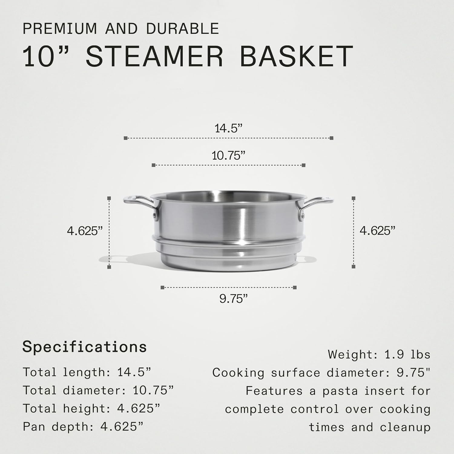 Made In Cookware - 10" Stainless Steel Steamer Insert - Pot Strainer - 8 Quart Compatible