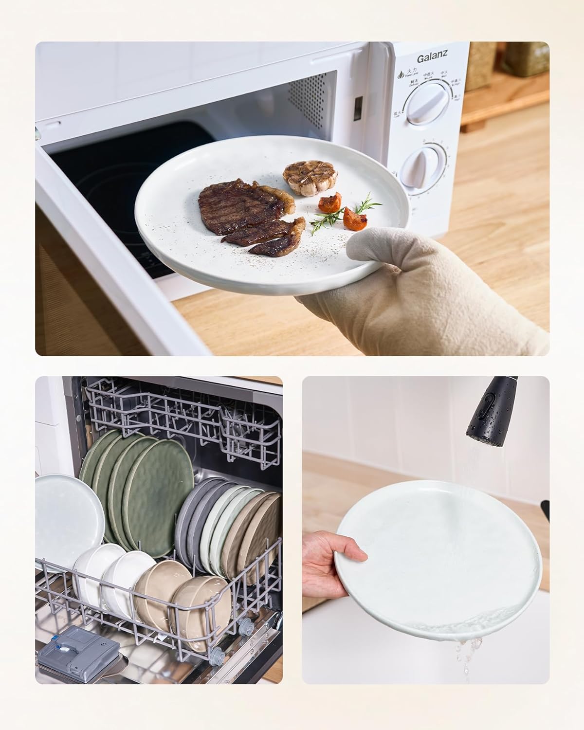 - 【Wave Surface Design】The wave surface design creates a special gloss of our glaze, which makes the dishes elegant and anti-skid. The elegant design is integrated with most kitchen environments.