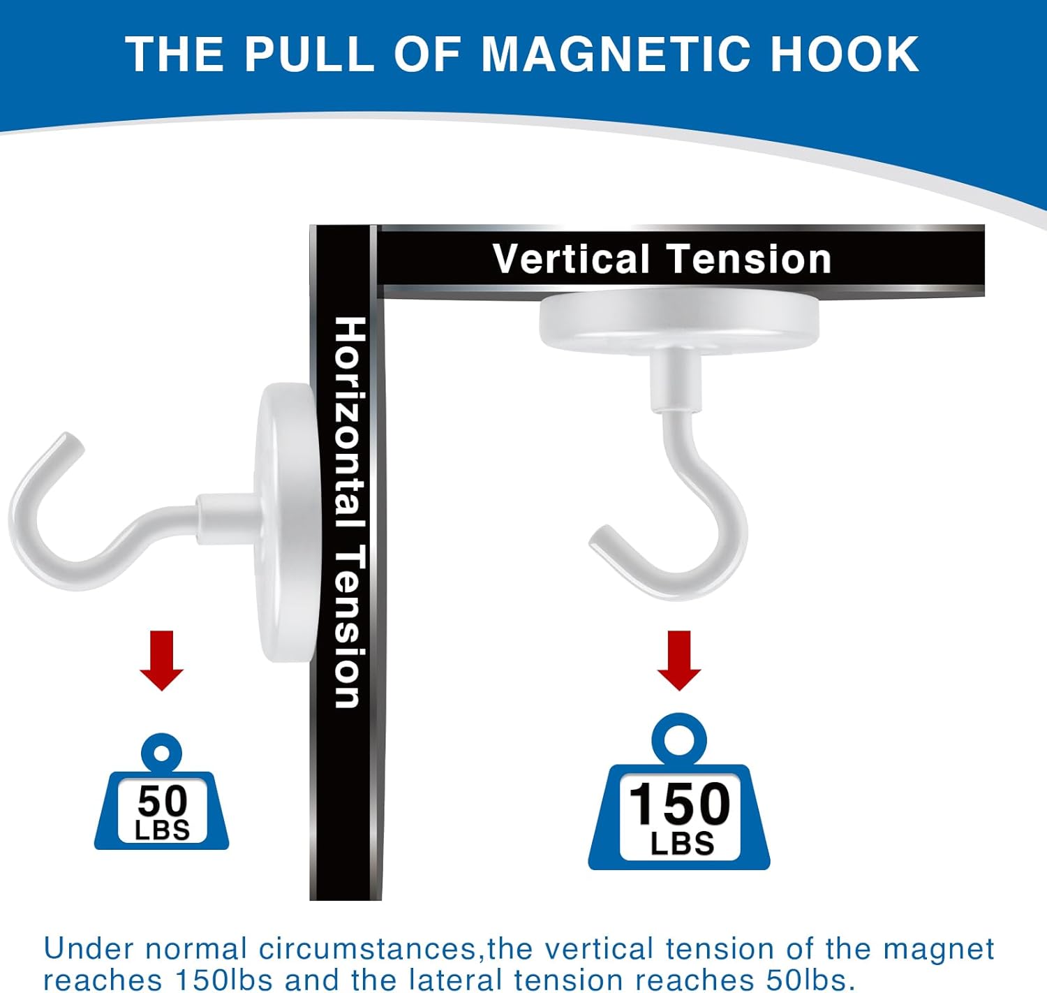 LOVIMAG Magnetic Hooks for Cruise Cabins, 150Lbs Cruise Magnets, White Magnetic Hooks Heavy Duty for Hanging, Refrigerator, Grill-4 Pack