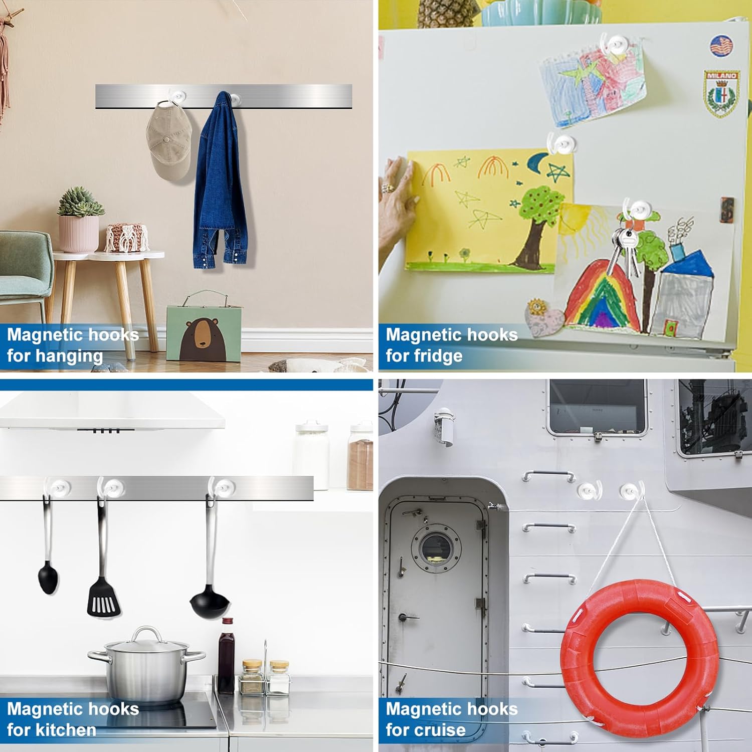 - 【WIDE APPLICATION】Strong magnets heavy duty can work great in cruise door magnets, magnet hooks can be used for cruise ship door decorations, refrigerator, hanging, iron door and grill.