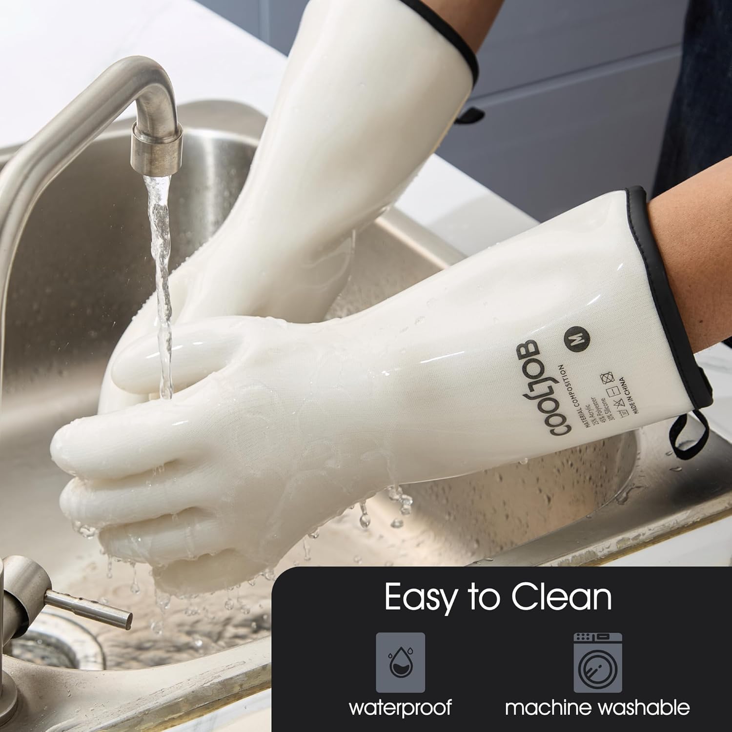 - High Quality Liquid Silicone Gloves: The kitchen gloves are made of Food Grade odorless silicone. With 13-inch sleeve, the gloves provide perfect protection for your hands and arms, defense against hot water and steam.