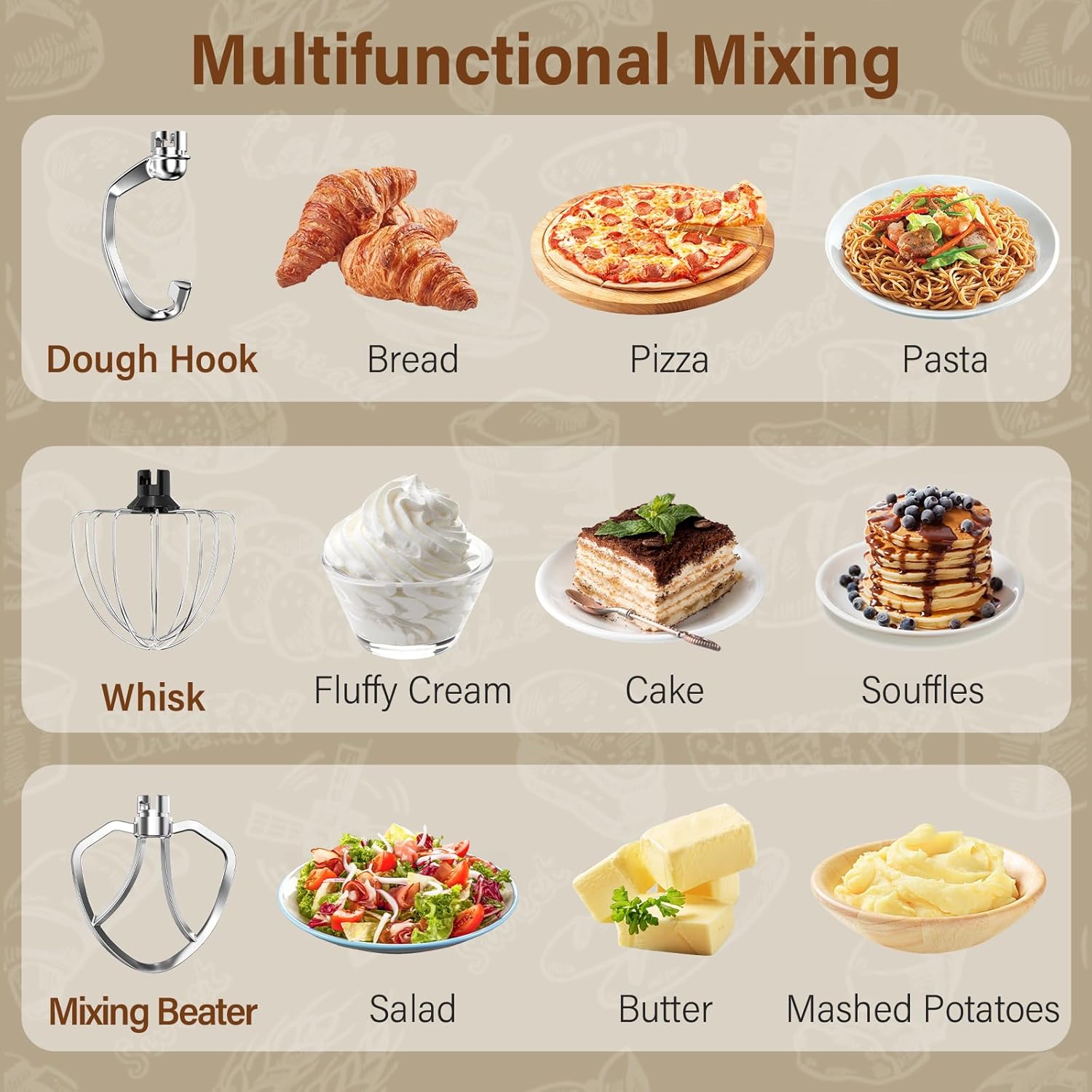 Stand Mixer,3-In-1 10-Speed 660W 5.5QT Tilt-Head Food Mixer, Electric Mixer with Bowl, Dough Hook, Whisk and Beater,Kitchen Mixer for Baking, Cake and Most Home Cooks, Beige