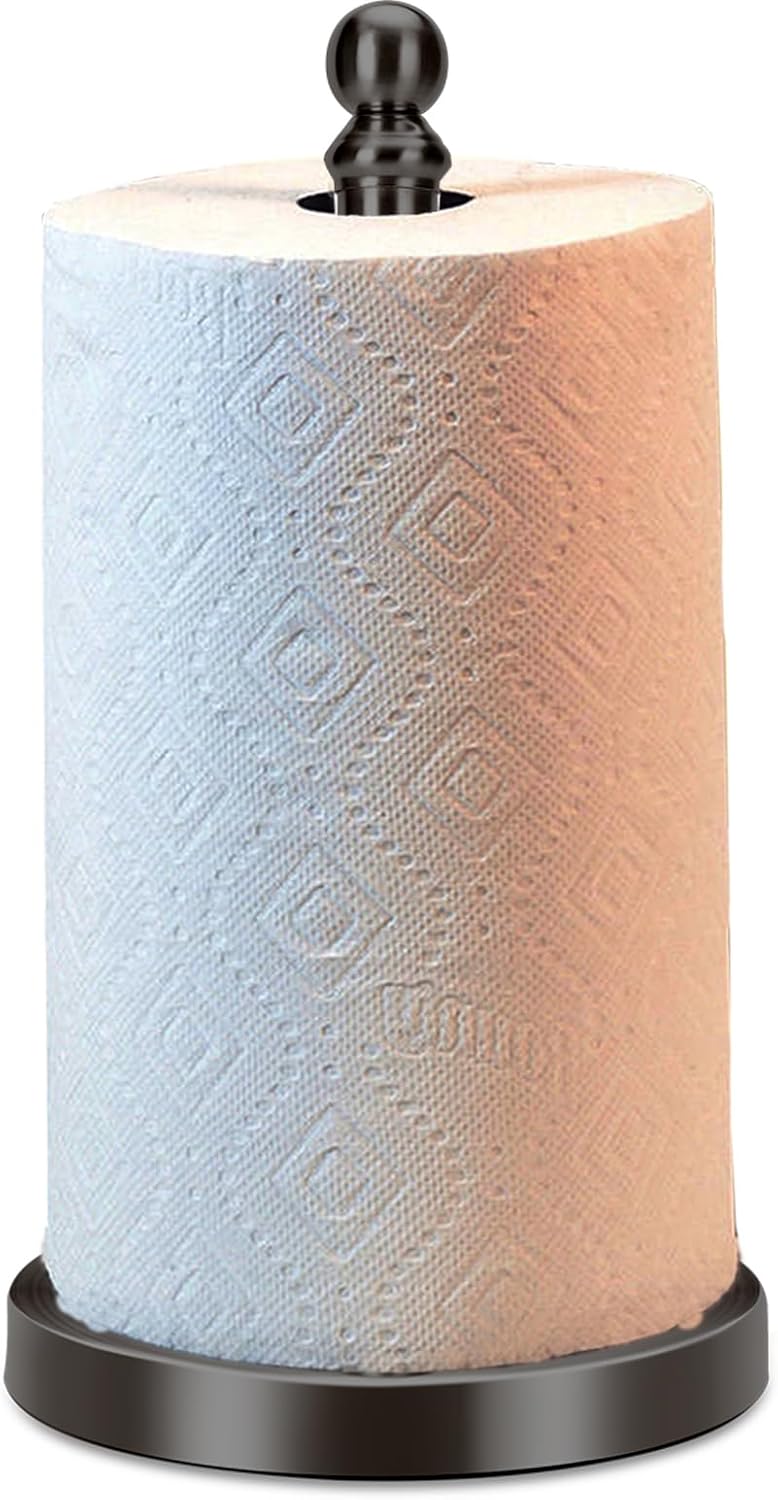 - Sturdy stainless steel weighted base, no tipping over when ripping paper off with one hand. Constructed with stainless steel, paper towel holder stand is very heavy, and it stays firmly on countertop when ripping paper off one-handed.