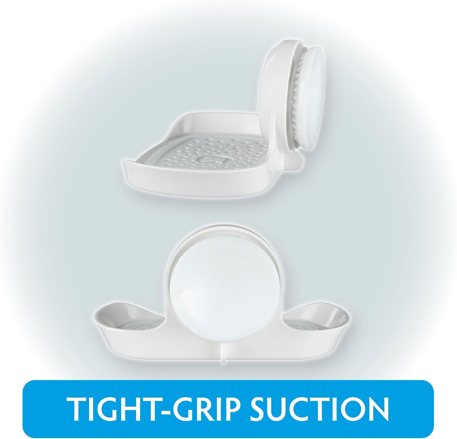 - Strong Hold Suction: Holds up to 11 pounds! Made of durable, rustproof plastic, this unique soap saver dish will last for years. Push-lock suction holds tight to smooth surfaces in your bathroom or kitchen.