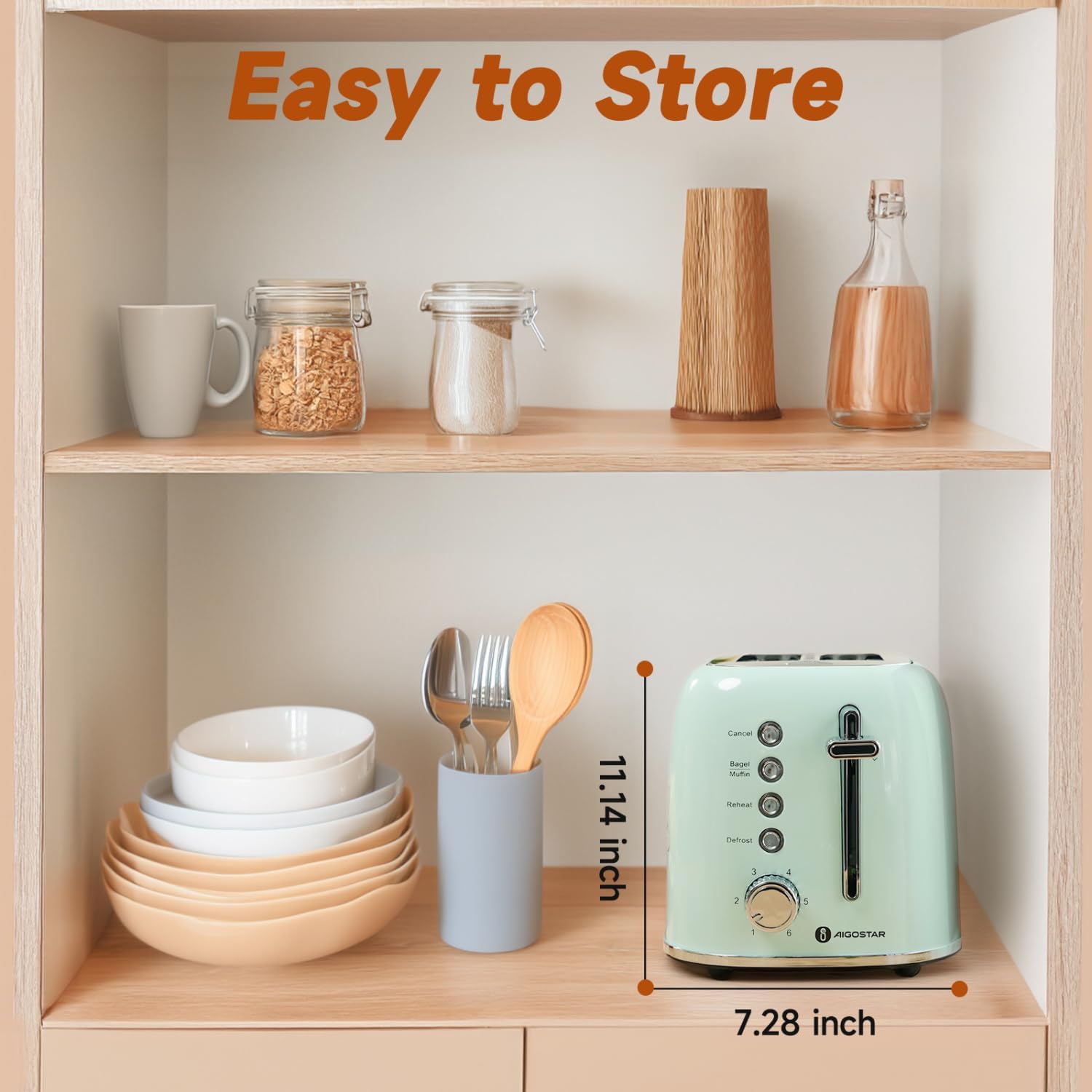 - Safe to Use: Heat insulation design around the toasterโs body to prevent it from scalding hands for safety use; High lift design provides more protection to avoid burnt risk when removing bread. Handy and tiny cord storage under the bottom