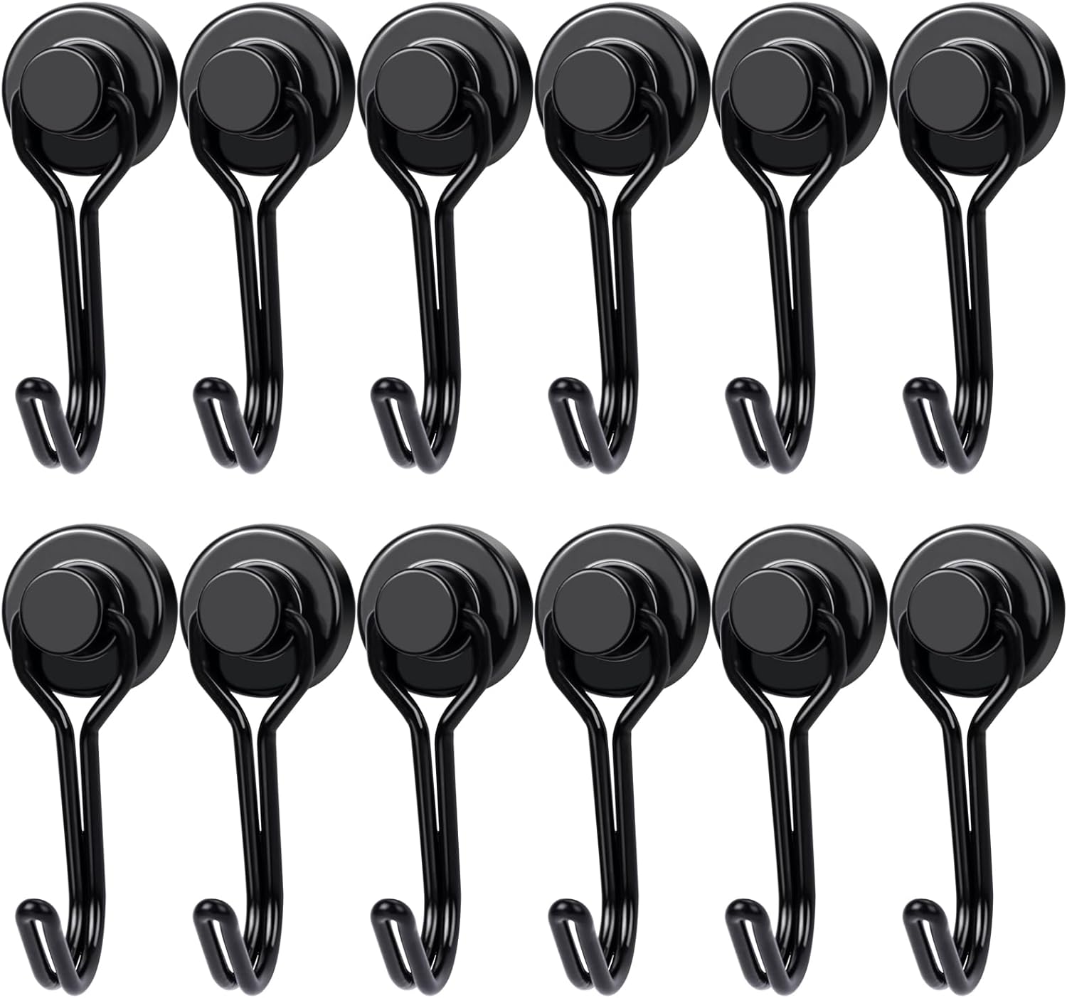 E BAVITE Swivel Swing Magnetic Hooks, 30LB(12pack) Refrigerator Magnet Hook,Strong Neodymium Magnets, Perfect for Refrigerator and Other Surfaces,60mm(2.36in) in Length