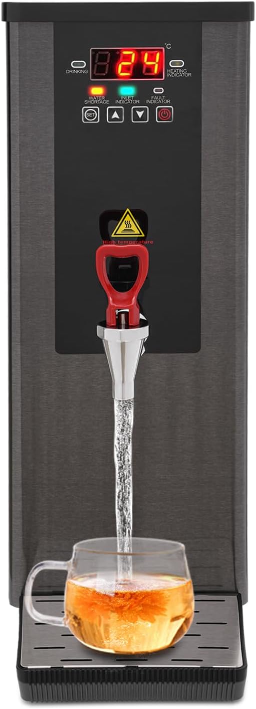 - 【Easy to Use & Good Material】: The smart digital display screen shows you the temperature in real-time and lets you see all the functions at a glance. The sensitive keys allow you to adjust easily. You can also set on and off times for your convenience.This commercial water boiling machine and dispenser mainly uses 304 stainless steel for the material, with high hardness, good performance of corrosion and rust resistance, making you drink it with peace of mind.