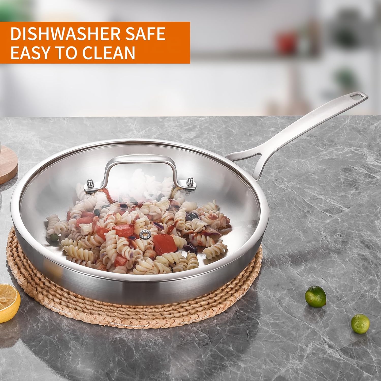 DELARLO Tri-ply Stainless Steel Frying Pan Set with Lid 8" 10" Induction Skillets Chef's Pan,Pots and Pans Set Kitchen Cookware Frying Pan Set Dishwasher and Oven Safe