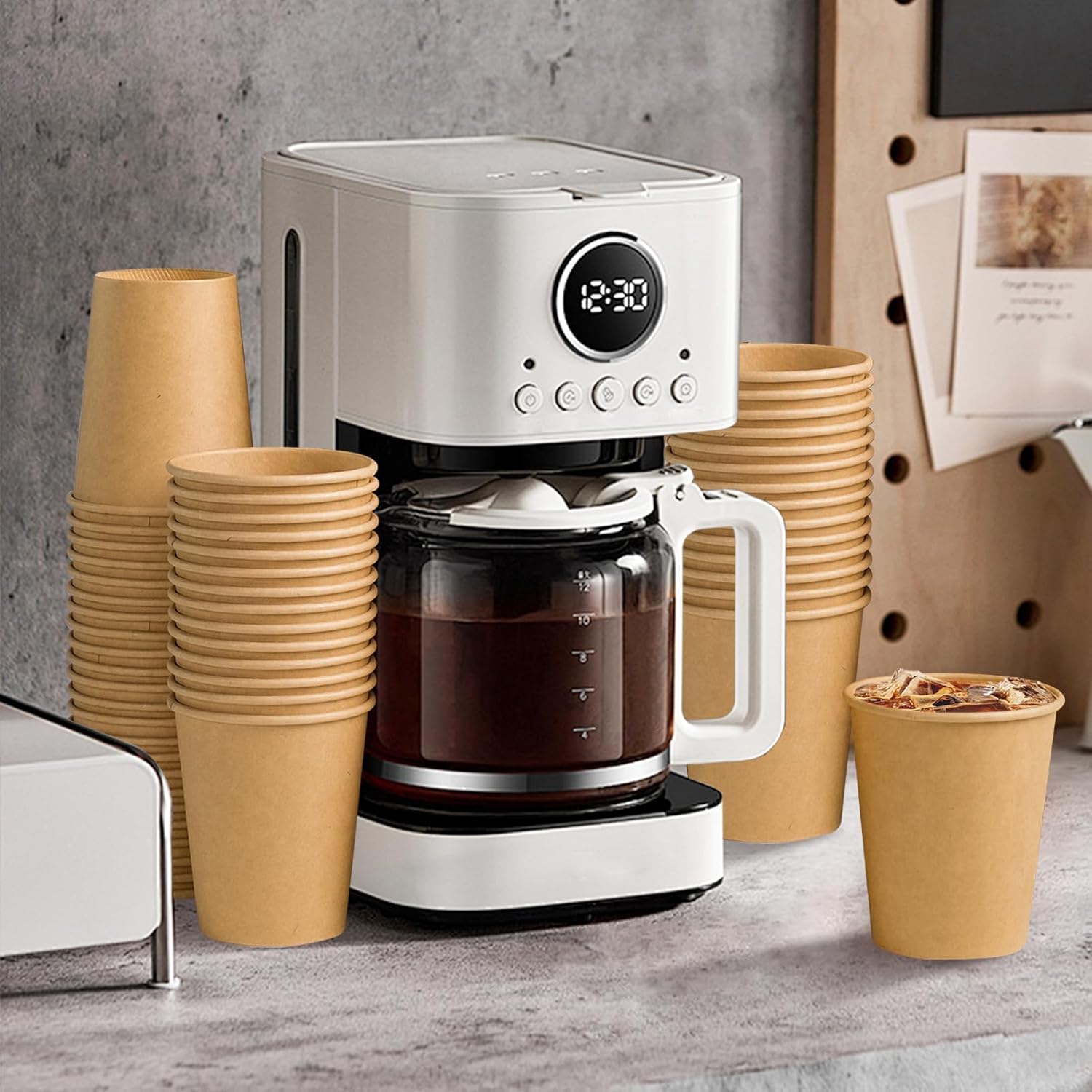 180 Pack 8 oz Paper Cups, Brown Kraft Disposable Paper Coffee Cups, Unbleached Paper Cups for Hot/Cold Beverage Party, Picnic, Travel, and Events.